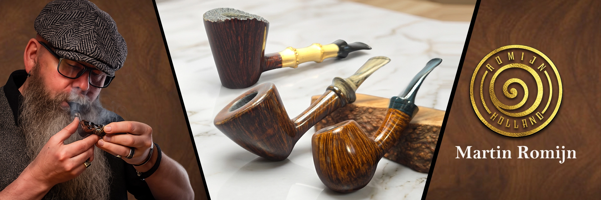 Martin Romijn Smooth Poker w/ Bamboo Handmade Briar Pipe, New