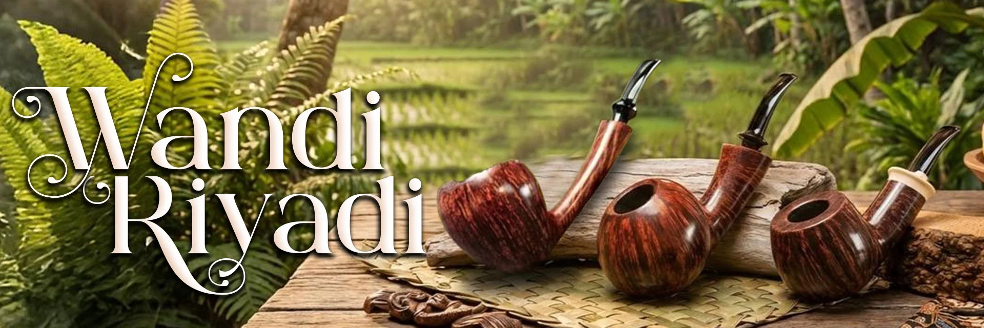 Wandi Riyadi Smooth Asymmetric Disc Blowfish Handmade Briar Pipe, New