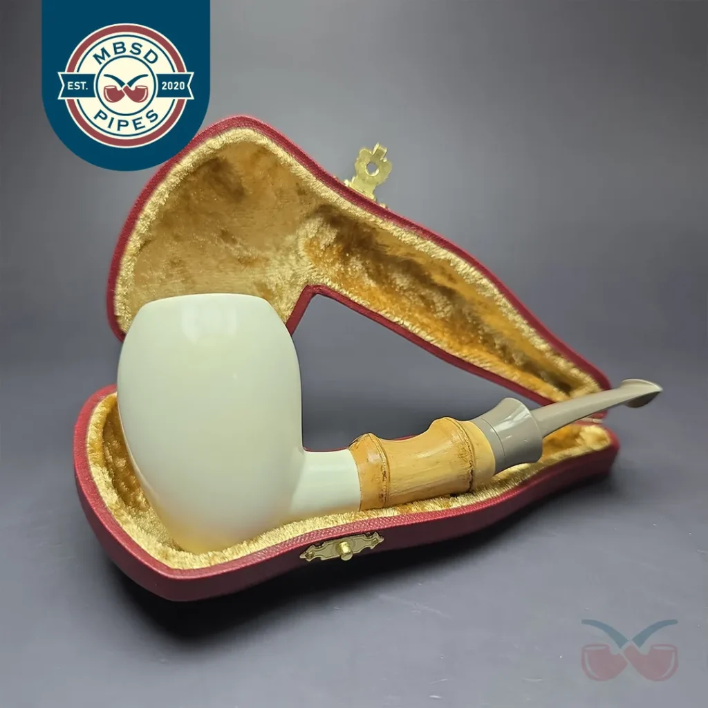SU Pipes Smooth Acorn w/ Bamboo Handmade Block Meerschaum Pipe, New