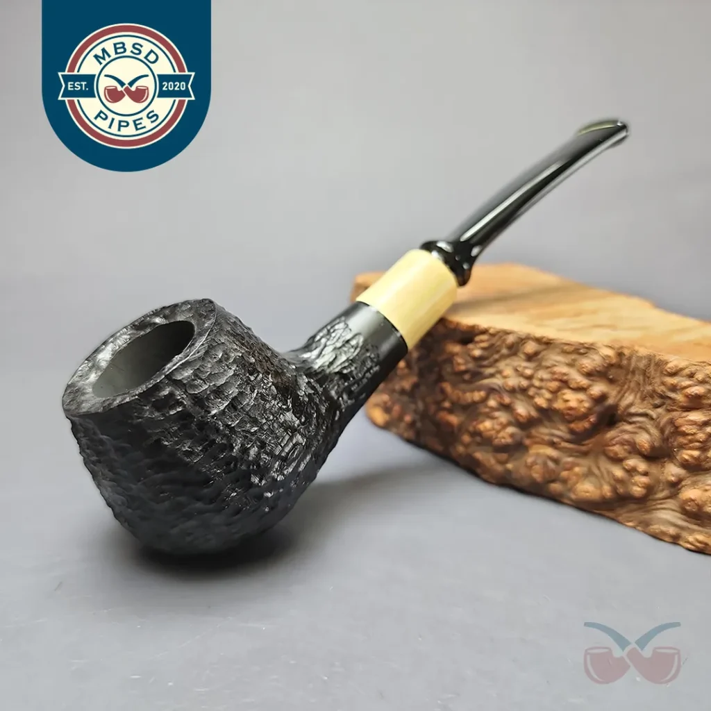 MBSD Briars by Piero Vitale Black Rusticated Billiard w/ Boxwood Briar Pipe, New