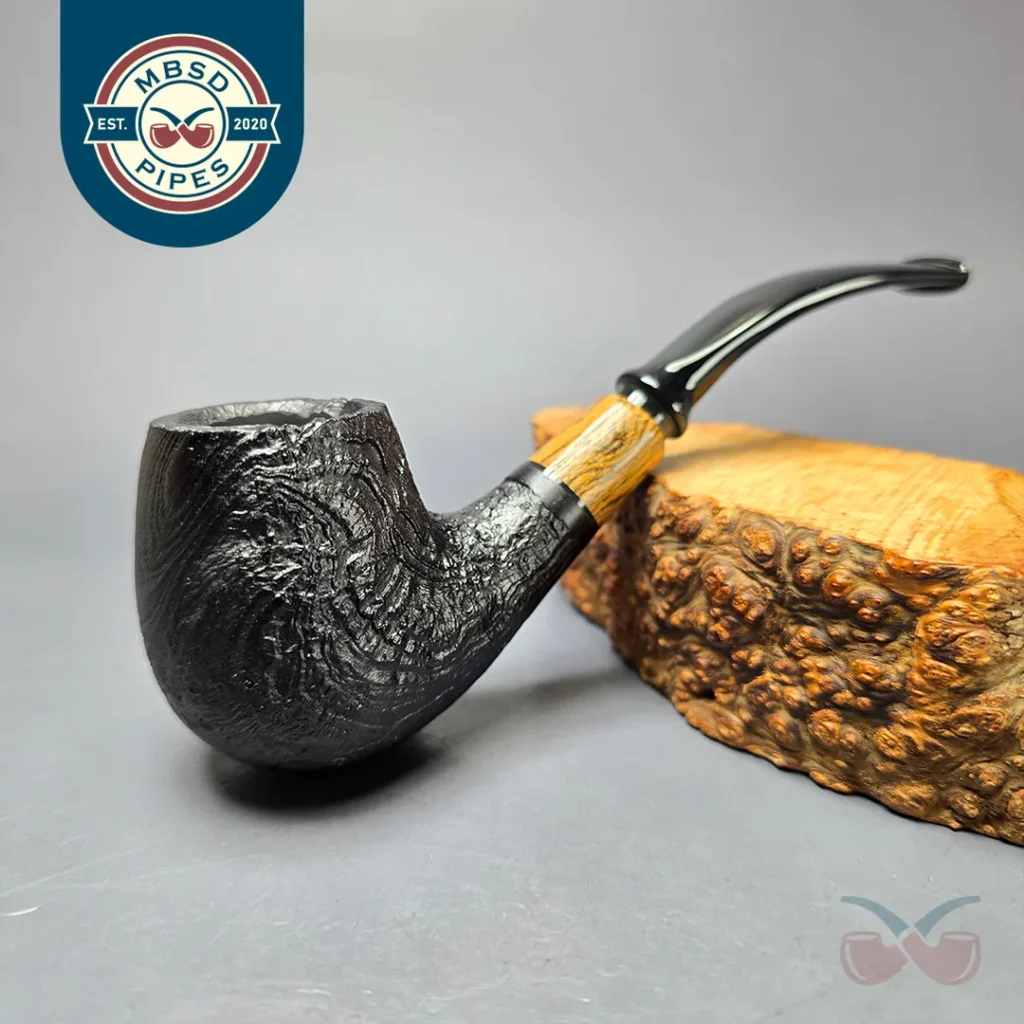 MBSD Briars by Piero Vitale Black Sandblasted Brandy w/ Olivewood Briar Pipe, New