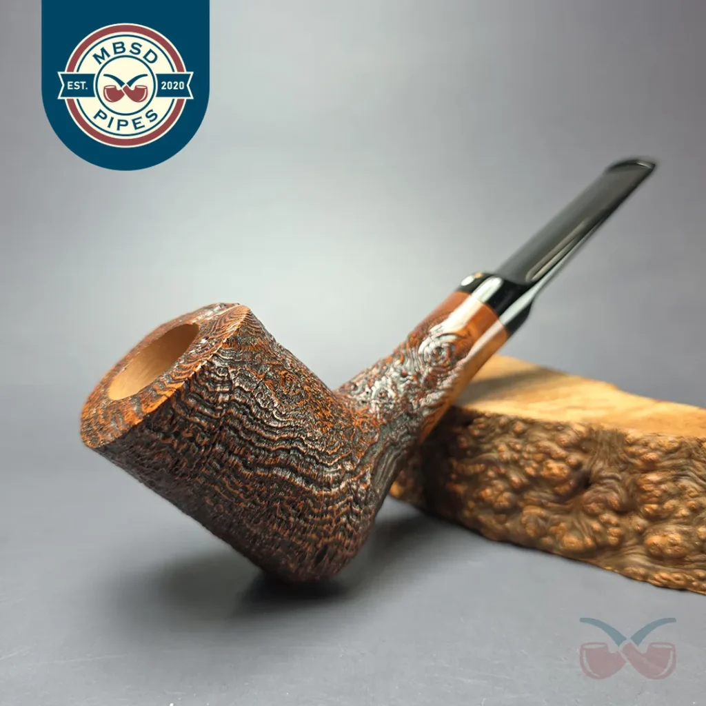 MBSD Briars by Piero Vitale Vintage Sandblasted Brandy w/ Zebrawood Briar Pipe, New