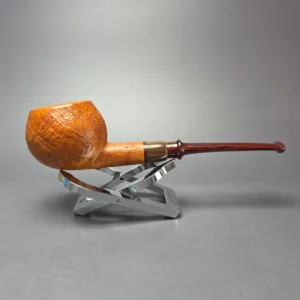 Brentegani Sandblasted Long Shank Dublin w/ Horn Handmade Briar Pipe, New