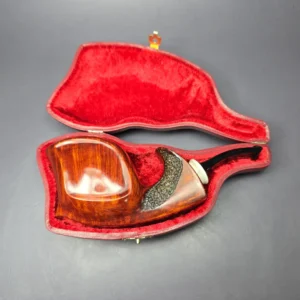 SU Pipes Sandblasted Speared Fish w/ Boxwood & Case Handmade Briar Pipe, New