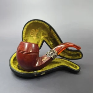 MBSD Meerschaum Deluxe Smooth Bent Billiard Block Meerschaum Pipe, Briar-Mortise, New