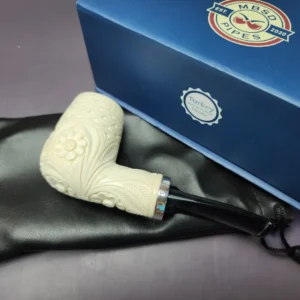 MBSD Meerschaum Silver Floral Reverse Calabash Brandy Block Meerschaum Pipe, New