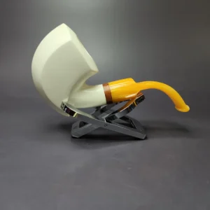 MBSD Meerschaum Deluxe Smooth Bent Billiard Block Meerschaum Pipe, Briar-Mortise, New