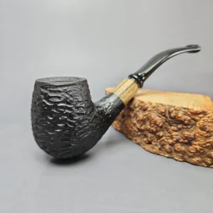 MBSD Briars by Piero Vitale Black Rusticated Brandy w/ Boxwood Briar Pipe, New