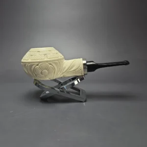 MBSD Meerschaum Silver Floral Rhodesian Reverse Calabash Block Meerschaum Pipe, New
