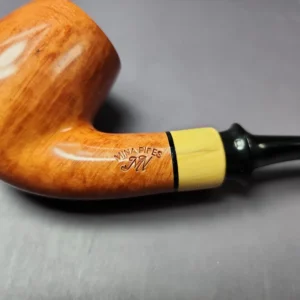 Mina Pipes Smooth Bent Billiard w/ Boxwood Estate Briar Pipe, Unsmoked, 9mm