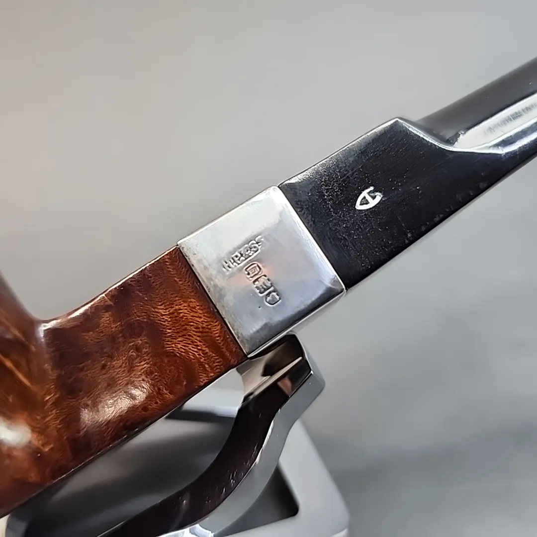 - 1908 Production Date: The hallmark “H.P.&S.S.” helps date the pipe to 1908. In the United Kingdom, hallmarking is a regulated process where specific marks are applied to precious metal items to indicate their quality, origin, and date of manufacture.