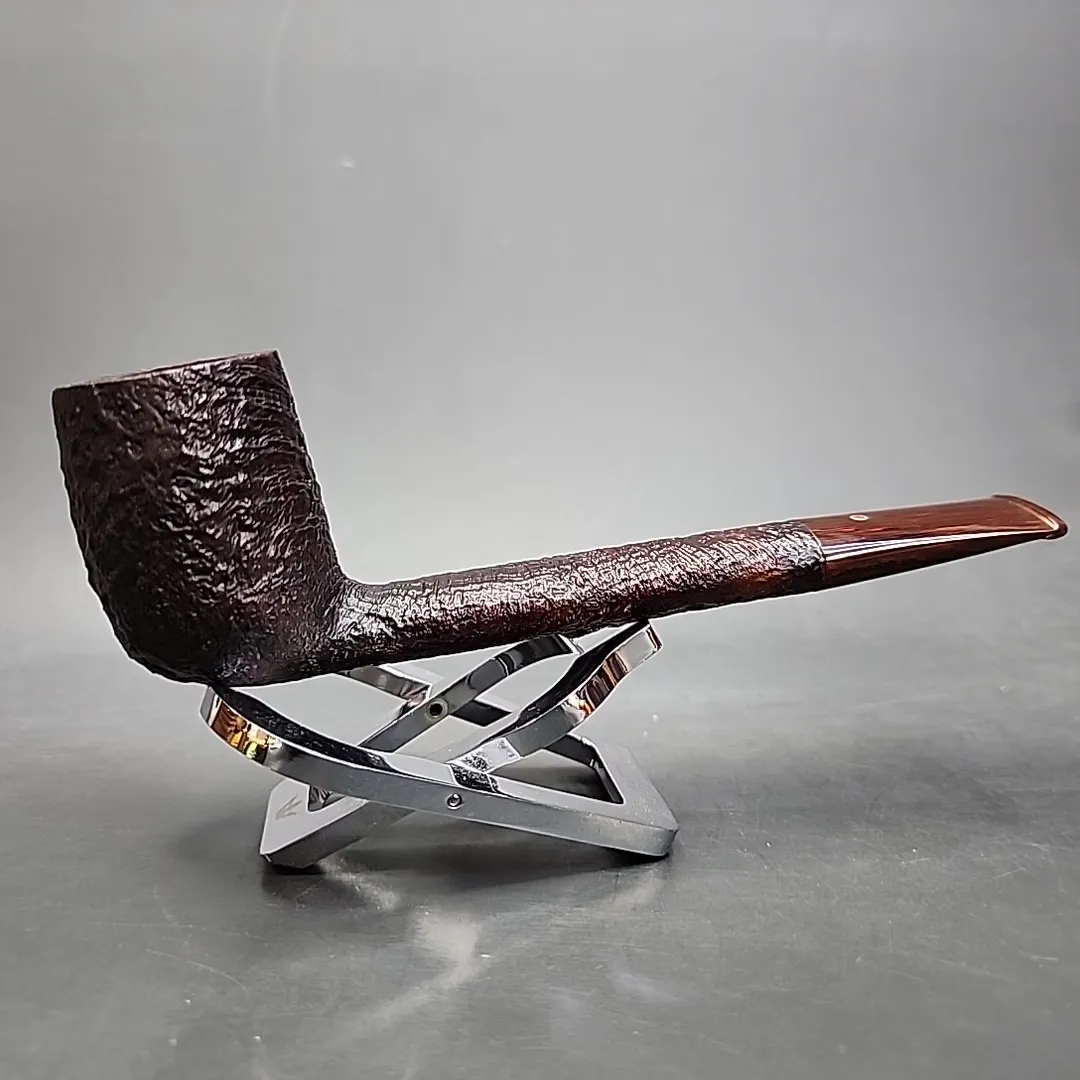 If you ask the most die-hard fans of Bill Taylor’s work, they’ll often tell you that his very best Ashton pipes were made in the first decade of the make’s existence. This Pebble Grain – Ashton’s answer to Dunhill’s Shell or Barling’s Fossil finishes – is a great example of that early output. It is an eminently traditional Canadian shape, with good, horizontal, ring grain sandblasting and a hand-cut cumberland stem. The proportions are exact, the button is slim and comfortable, and the pipe, despite being six inches long, is not at all heavy, at around 40 grams. Veteran smokers should find it comfortable enough for clenching, especially with Bill’s renowned stem-work.