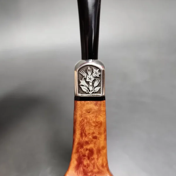 While Castello pipes are certainly exclusive, the workshop is less known for its explicitly limited edition offerings. But Castello do make such pipes, and the reason for their relative lack of recognition is likely in part because their limited edition pieces are indeed very limited. Throughout the 1990s, Castello released a special, yearly pipe—something like a Pipe of the Year, as certain other makes offer—with production restricted to only 235 of them across Castello’s various finishes. This one was the 1995 model, a highly unique paneled Zulu shape with a similarly paneled sterling silver army mount engraved with floral motifs and the Castello “castle” logo. This one represented Castello’s Trademark grade in the series, which I find a little surprising, as I personally would have assigned it a “Castello” or “Collection” grade, judging by the striking grain patterns. In any case, this is only the third pipe from the 1995 series that I’ve encountered—this one being the first I’ve seen up close, with the two others being during online research. As such, and to return to what I was saying at the beginning of this listing, this is a very exclusive pipe from an already exclusive make.