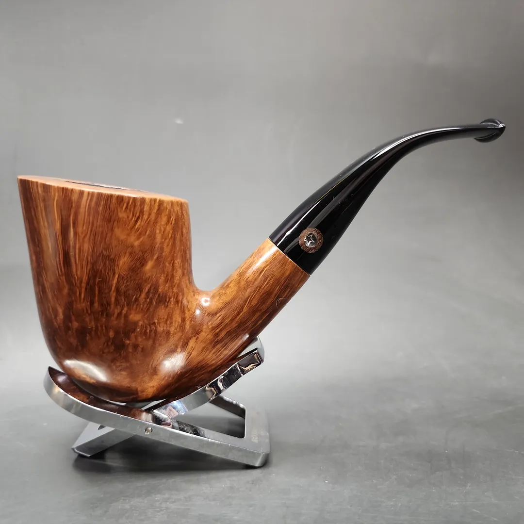 The American Smoking Pipe Company was founded in 1978 by artisans Mark Tinsky and Curt Rollar. Tinsky and Rollar’s venture was part of a new wave of North American hand made pipe making that emerged in the 1970s and ’80s, including artisan carvers such as Mike Butera, Tim West, Elliot Nachtwalter and Jorg Jemelka. Despite the name, American Smoking Pipe Co. was not a factory or large scale operation, but a simple pipe workshop and name shared between friends. Rollar departed the company in 1990, after which Tinsky remained at the reins into the 2000s, before selling his pipes under his own name.
