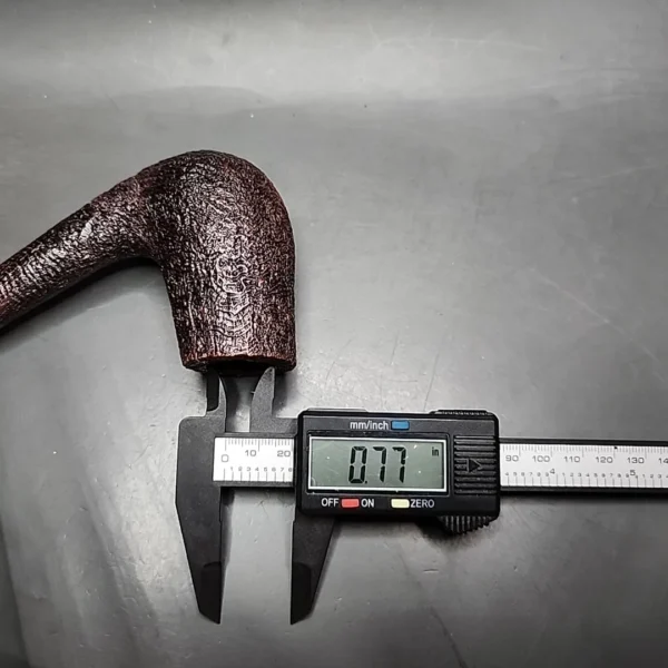 This particular Cooke is a little different to the ones we’ve had in recently, but the origin is much the same. We’ve had Cooke’s renditions of Dunhill’s “LB” (“large billiard”) and their “O” squat bulldog, and here we have another iconic Dunhill shape: the “LC.” This is not a shape that can be found in Dunhill’s current catalog, yet it is one that has achieved the status of a unicorn for collectors and a singular object of study by artisan pipe-makers. Debuting in the 1920s and all but falling out of production by the mid-century, LC shapes were tall and generally inordinately large quarter-bent billiards, with a profile that is sometimes referred to as a “swan neck.” Given Cooke’s affinity for the great English makes, and in particular the pipes produced by these makes in the first half of the 20th century, it should be no surprise that he would create his own homage to the LC. Made in 2002, this one features Cooke’s renowned ring grain sandblasting and a stem cut from his own hand-poured acrylic rods.
