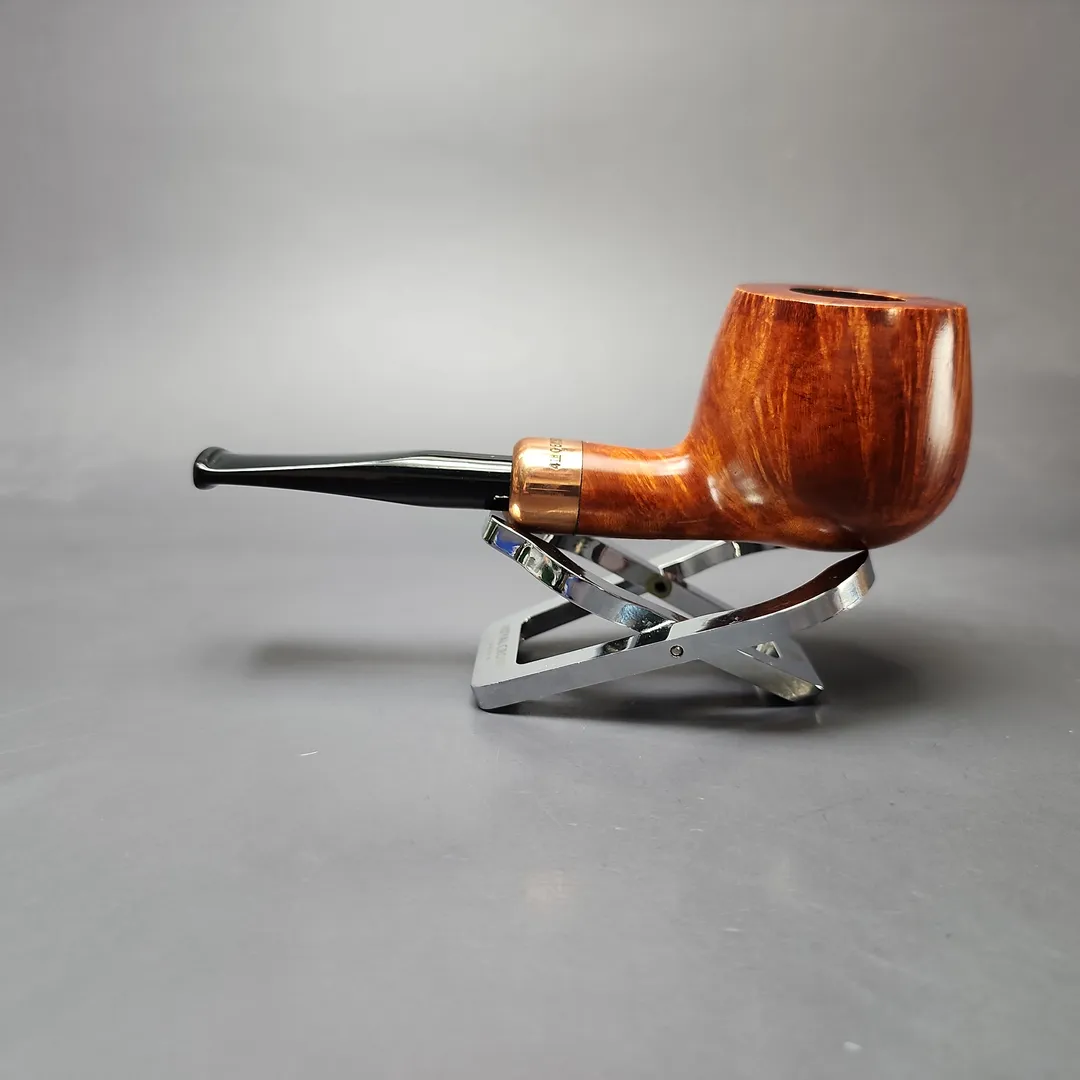 As mentioned, the Stokkebye family have had a long history of commissioning world-class pipe makers to craft pipes for the Stokkebye brand. While Peter Stokkebye primarily enlisted Jorgen Larsen, Erik Stokkebye has, over the last decade or so, had his 4th Generation pipes made by a whole roster of master carvers. This has included a number of world-class Danish pipe makers, such as Tom Eltang, Peder Jeppesen, Erik Nording, and Manduela Riger-Kusk. Recently, however, has also included similarly high-grade makers from beyond Stokkebye’s native Denmark, such as Belgium’s Bruno Nuttens, Japan’s Asami Kikuchi of Tsuge Ikebana, and, in this instance, Italy’s Ascorti workshop. The 1831 apple shape is one of several Italo-Scandinavian designs created for Erik Stokkebye by the famous Ascorti family, seen here dressed in a warm, brown finish and fitted with a copper army mount.