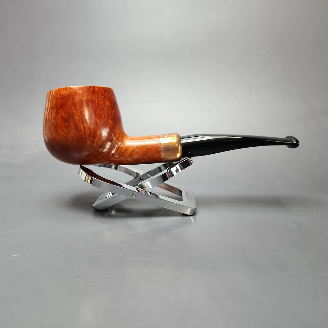 As mentioned, the Stokkebye family have had a long history of commissioning world-class pipe makers to craft pipes for the Stokkebye brand. While Peter Stokkebye primarily enlisted Jorgen Larsen, Erik Stokkebye has, over the last decade or so, had his 4th Generation pipes made by a whole roster of master carvers. This has included a number of world-class Danish pipe makers, such as Tom Eltang, Peder Jeppesen, Erik Nording, and Manduela Riger-Kusk. Recently, however, has also included similarly high-grade makers from beyond Stokkebye’s native Denmark, such as Belgium’s Bruno Nuttens, Japan’s Asami Kikuchi of Tsuge Ikebana, and, in this instance, Italy’s Ascorti workshop. The 1831 apple shape is one of several Italo-Scandinavian designs created for Erik Stokkebye by the famous Ascorti family, seen here dressed in a warm, brown finish and fitted with a copper army mount.