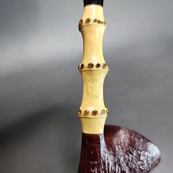 Blending Danish and Japanese influences in his own, unique way, this bamboo-pickaxe from Adam Davison is really something to behold – and indeed to hold, which I will get to in a moment. The bowl is a perfectly executed, ring grain sandblast that also manages to bring out the bird’s-eye grain on its rim in an uncommonly beautiful manner. To this, Davidson has added a long, three-knuckle bamboo shank extension, whose proportional relation to the bowl recalls early currents in Danish design (e.g., the post-war pipes of Sixten Ivarsson). Returning to the topic of ‘holding’: the pipe is incredibly lightweight, at just 24 grams. It should therefore be a comfortable clencher for just about anyone.