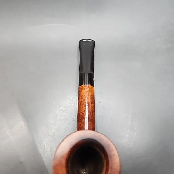 As the pipe is several decades old at this point, it does have a few handling marks around the bowl, and some of the stamping is quite faint (though one can make out that it was crafted by Curt Rollar). The stem had a few deep tooth impressions when we received it, so in addition to refurbishing the pipe, we had the stem professionally restored by Briarville.