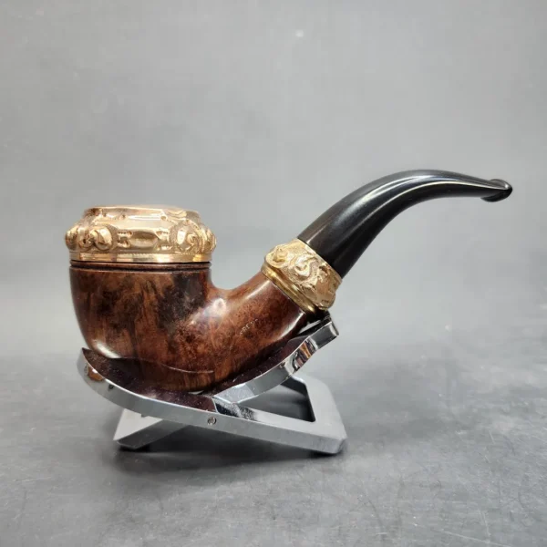 Antique French Made, Gold Mounted Bent Rhodesian Estate Briar Pipe