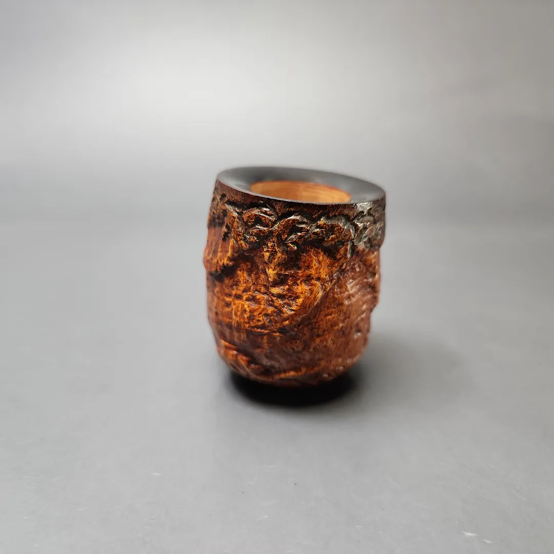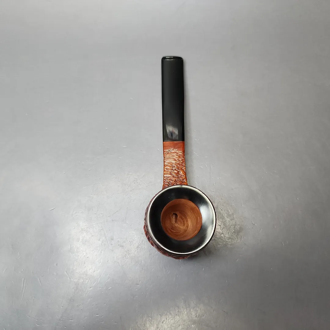 Though figural motifs have been used in pipe carving for centuries, in the context of Italian workshop pipes, so-called “wax drip” finishes can be traced back to Castello and the “Epoca,” an early line that was removed from regular production in the 1960s. The Epoca was reborn, one might say, at Caminetto, under the direction of two former Castello craftsmen, Guiseppe Ascorti and Luigi Radice, whose own rendition was named the “New Dear.” After Caminetto disbanded in the 1970s (and prior to being restarted in the 1980s), Luigi Radice and Guiseppe Ascorti started their own workshops once again, this time separately. Each took the wax-drip motif and renewed it once more: Radice with his “Underwood”; and Ascorti with his own “New Dear.” The latter was not just more faithful in name to the old Caminetto version, but was arguably closest to it, adhering to the same rustic and naturalistic design approach for the new New Dear.
