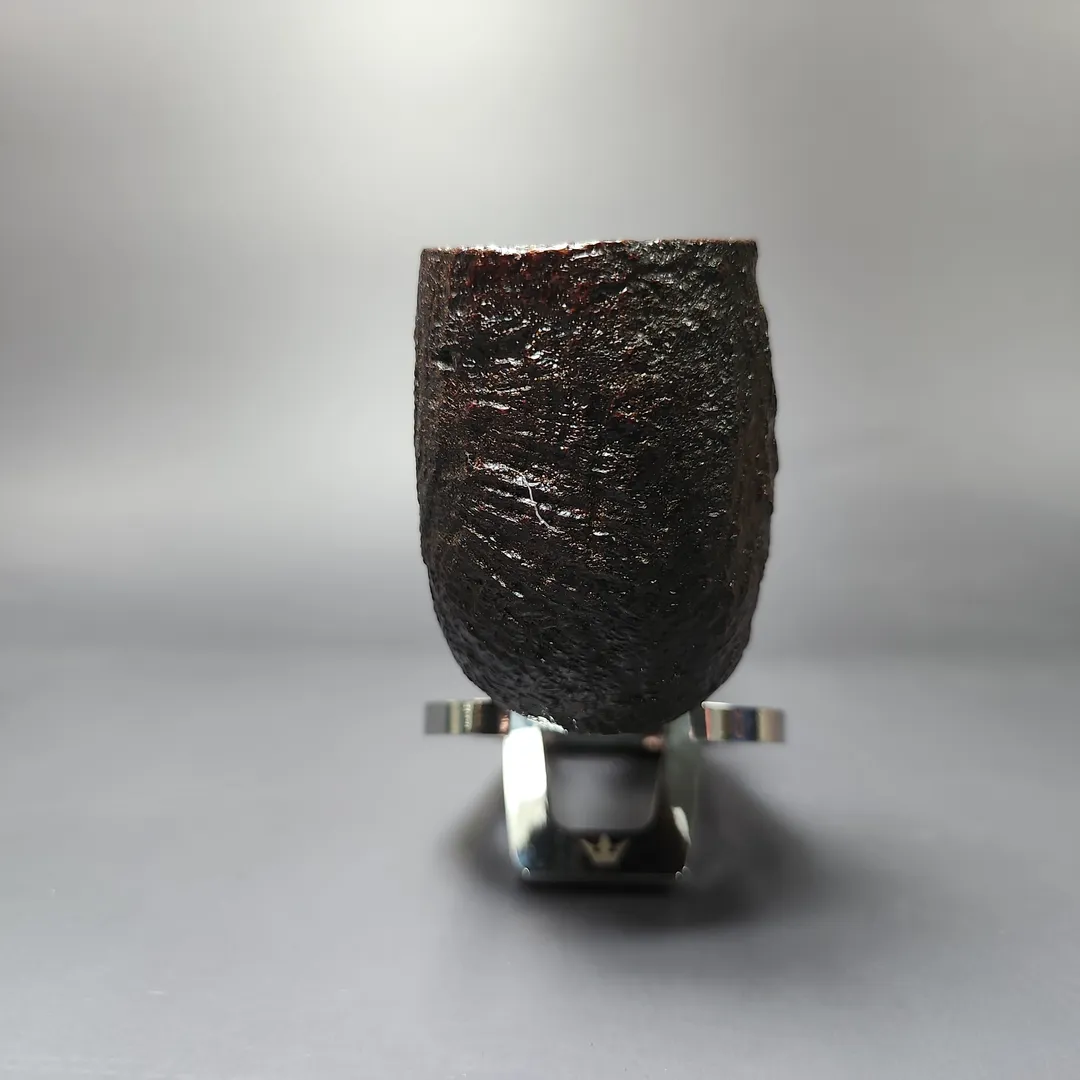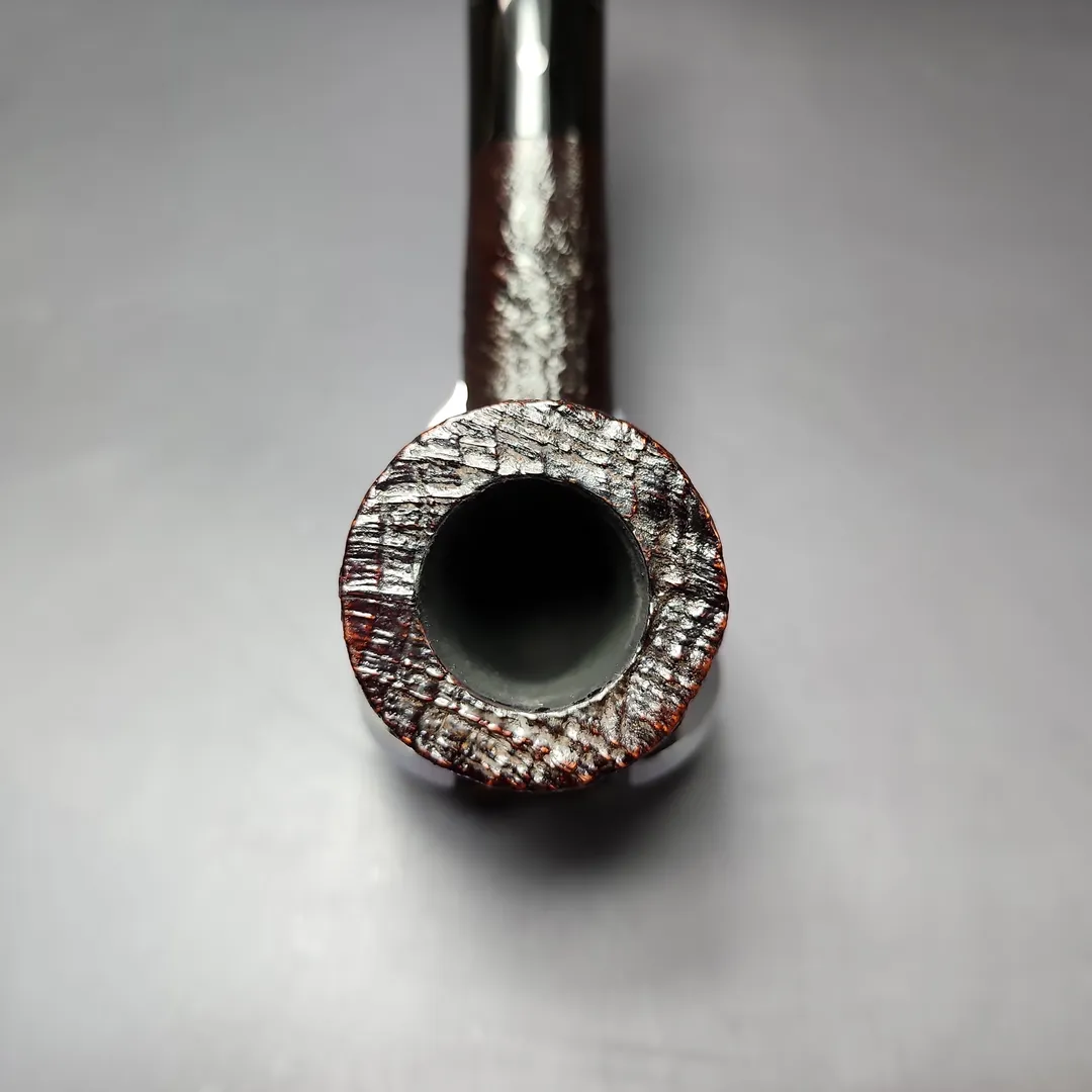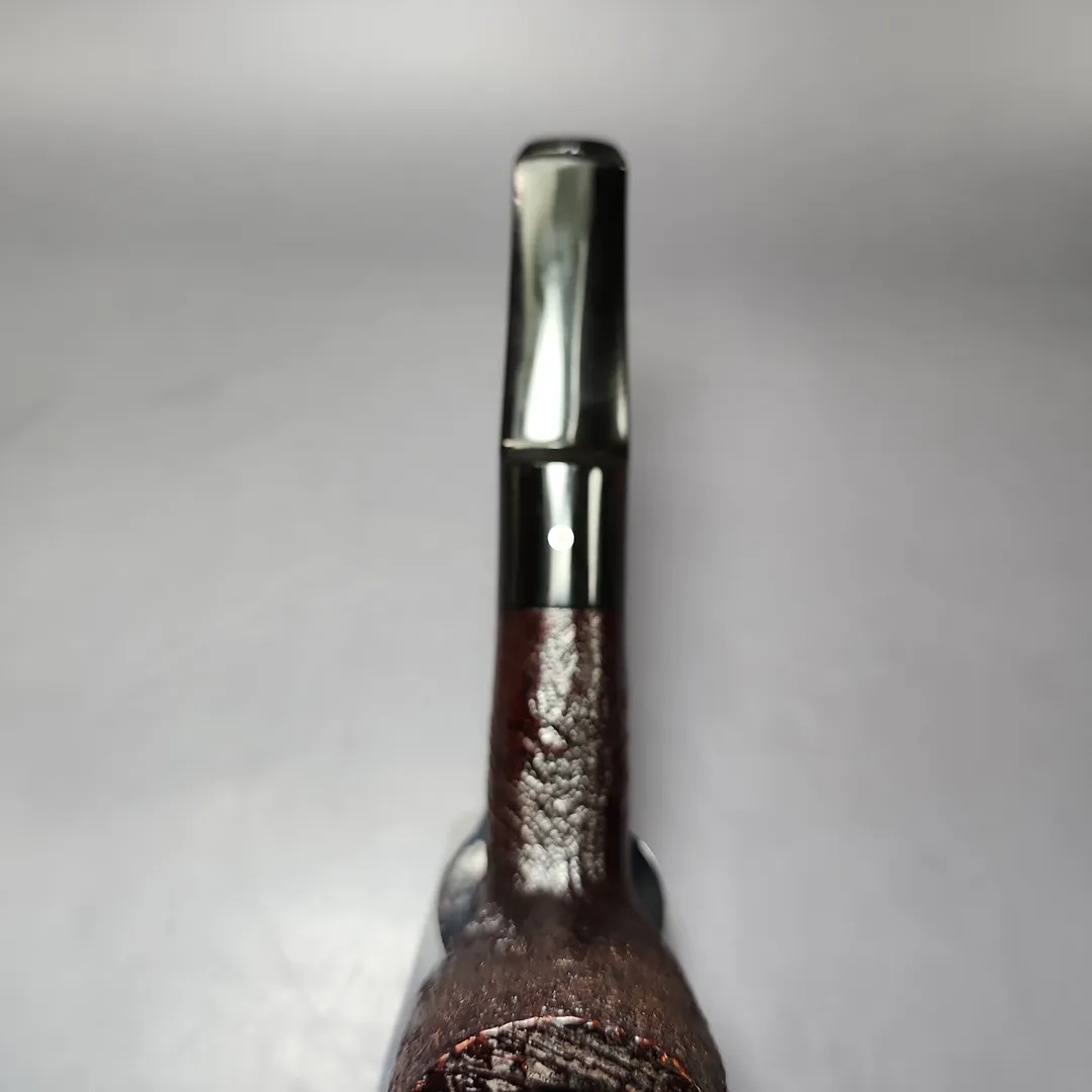 Aside from the rarely-seen “Magnum,” the “ELX” was (and still is) the largest size group produced by Ashton. In the case of this billiard, I would be inclined to use the colloquialism of the “pocket magnum.” At nearly 7 inches in length, this ELX billiard is certainly large, though it earns its pocket magnum status more by its sheer height and heft. Make no mistake, it is a stout pipe, with a voluminous chamber and thick bowl walls that will likely handle just about anything thrown at it, and for a good while, too. While the finishing is a subdued affair, if anything, it makes the pipe even more imposing. The “Pebble Grain” was originally Bill Taylor’s answer to the Dunhill Shell Briar, created using a patented, oil-cured sandblast finishing not unlike the latter in its first decades. In the case of this one, it not only serves its functional purposes, but also makes for a lean, mean, smoking machine.