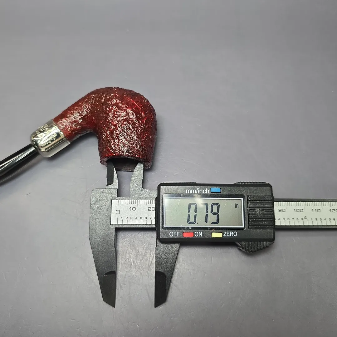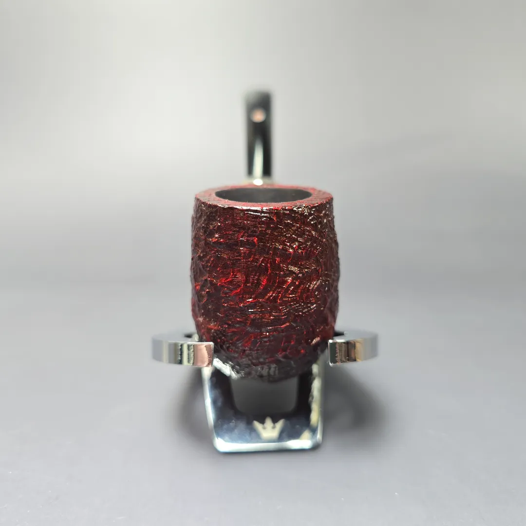 The “Pebble Grain” was Bill Taylor’s answer to Dunhill’s Shell Briar. This would already be easily deduced from its craggy, dark burgundy sandblast, but there’s another connection that brought the two finishes together. Like the early Dunhill Shell Briar, Ashton pipes were, before being finished, oil cured using a patented method of Taylor’s own invention. Decades later, Ashton Pebble Grains still undergo this treatment, allowing even the more svelte pieces in the workshop’s portfolio—like this sterling silver-mounted bent billiard—to wear the kinds of deep, craggy relief finishes that propelled Ashton into the big leagues. One slight change made under Craig’s tenure has been the addition of an even deeper contrast effect to the Pebble Grain’s finishing, adding even more layers to their rich texture.