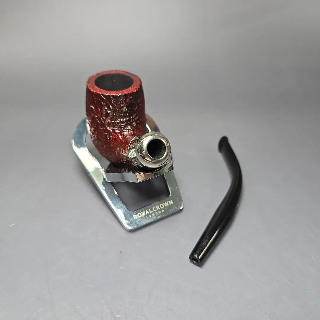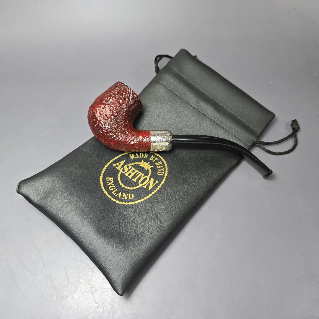 Ashton Pebble Grain XX Sandblasted Bent Billiard w/ Silver Estate Briar Pipe, Unsmoked