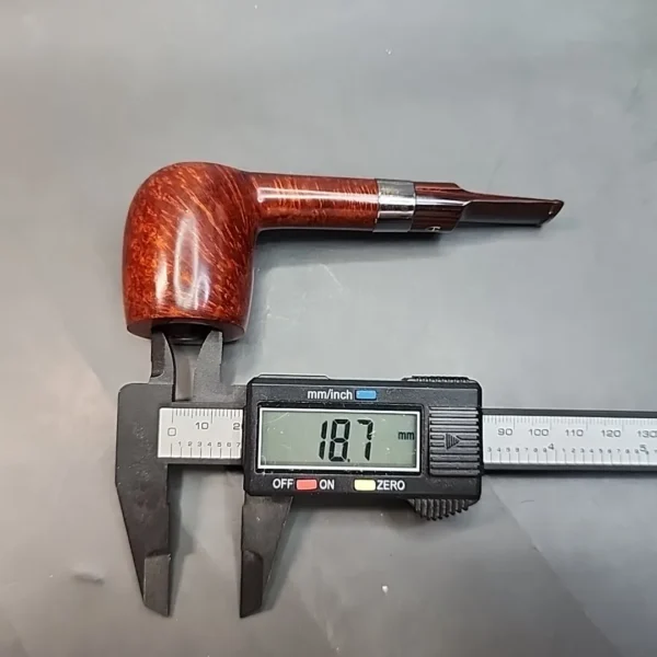 While it can sometimes be quite difficult to know who made a specific Astleys pipe, we have confirmed through our access to Astleys company records, and through Mr Wood himself, that this particular specimen was made by Les Wood of Ferndown fame. Those familiar with Wood’s work will likely recognize it immediately as one of his, as it is a beautifully crafted, classic English billiard, with a hand cut cumberland stem and a sterling silver band with the L&JS maker’s mark. This beautiful Lovat also comes with it’s original box!