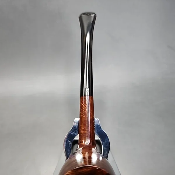 I like to guess which pipe-maker I think created each of the Astleys that comes across my desk. While it’s often only an estimate, this one is even more difficult. It’s a long, stack billiard, with a pencil shank and a slight, gentle curvature. Who makes – or made – pipes like that? I’m torn between Charatan and James Upshall, as I’ve definitely seen somewhat similar pipes from those makes before. It’s certainly a hand made piece. In any case, it’s a beautiful pipe, with a golden brown stain and plenty of bird’s-eye and cross grain.