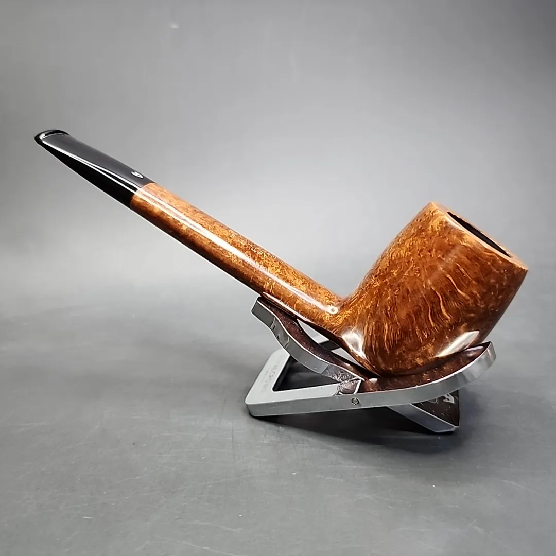 Given how many renowned pipe-makers were contracted to manufacture under Astleys house brand, it is often a guessing game as to who might have made which pipe. Unlike some of the Ferndown-made Astleys we’ve had in recently, I can’t say with 100% certainty who made this one, either. But I would be very surprised if this one wasn’t made by Barry and Ken at James Upshall. The stain alone is a dead ringer for Upshall’s “A” grade light tan finish, and the shaping and stem-work have me thinking I’d bet money on where this pipe came from. The other possibility would be Bill Taylor’s Ashton and his earlier, Sovereign grade pipes, but I’m still leaning closer to Upshall. It’s a great pipe, that’s for definite. It’s a very traditional Canadian shape, with good grain and a distinct lightness that should make it an easy clencher.