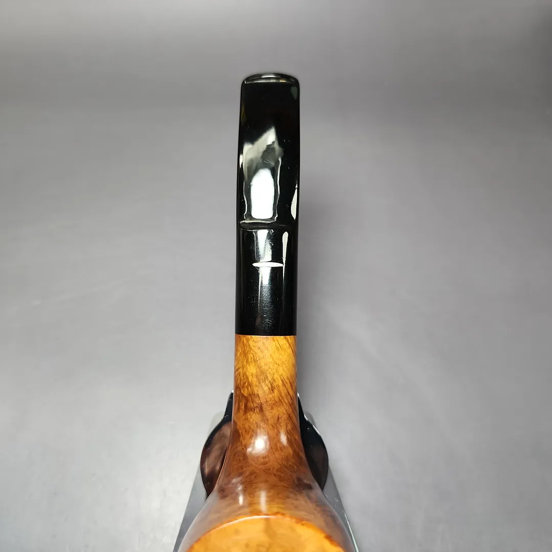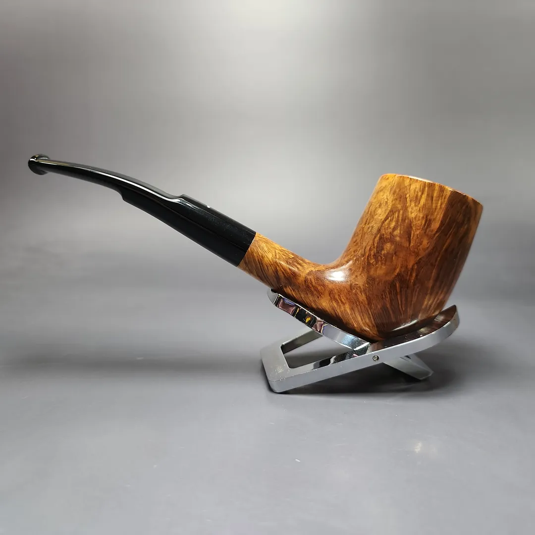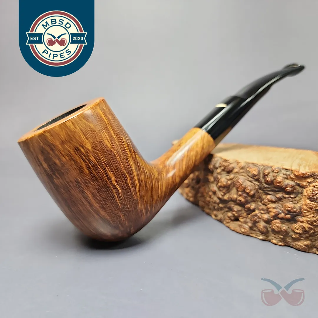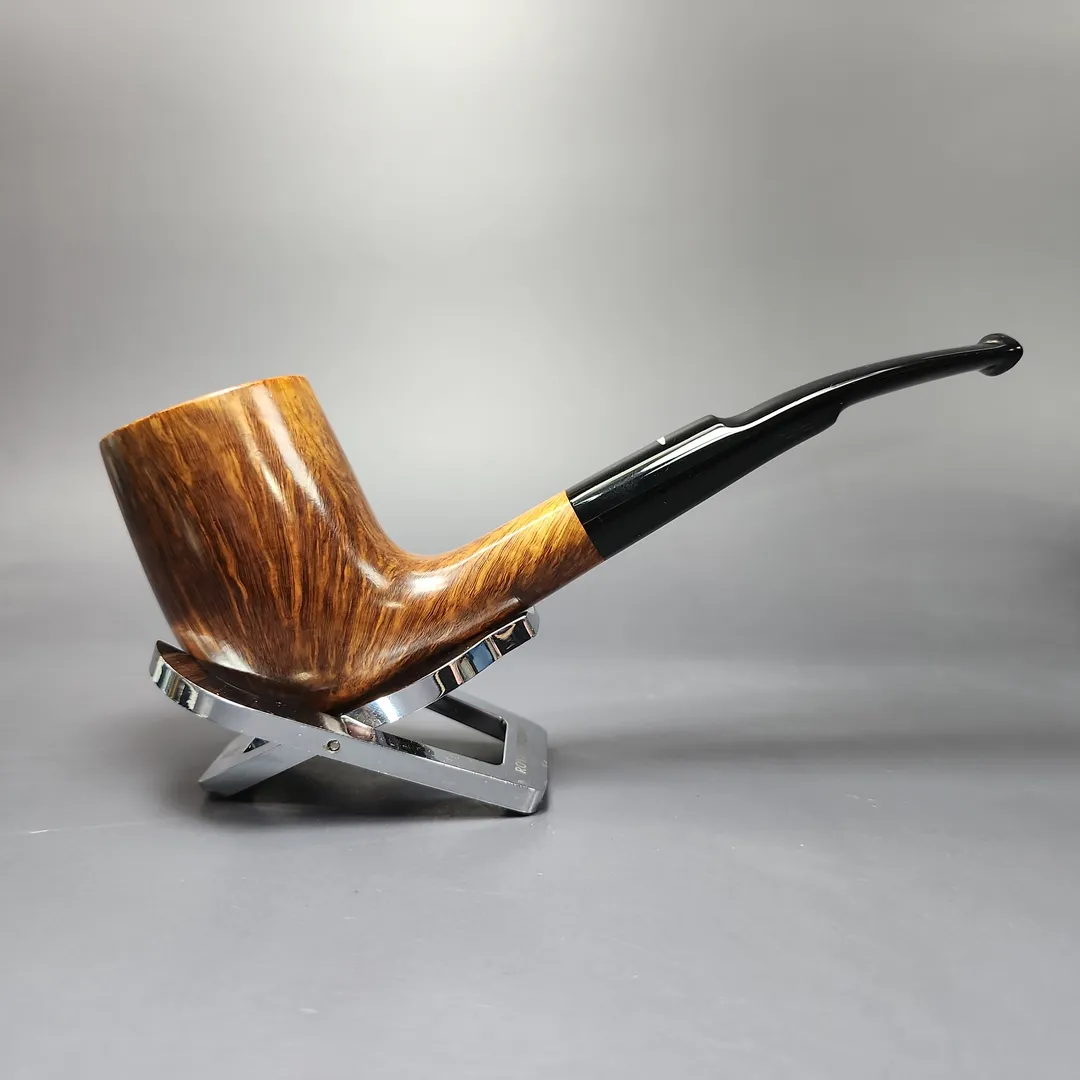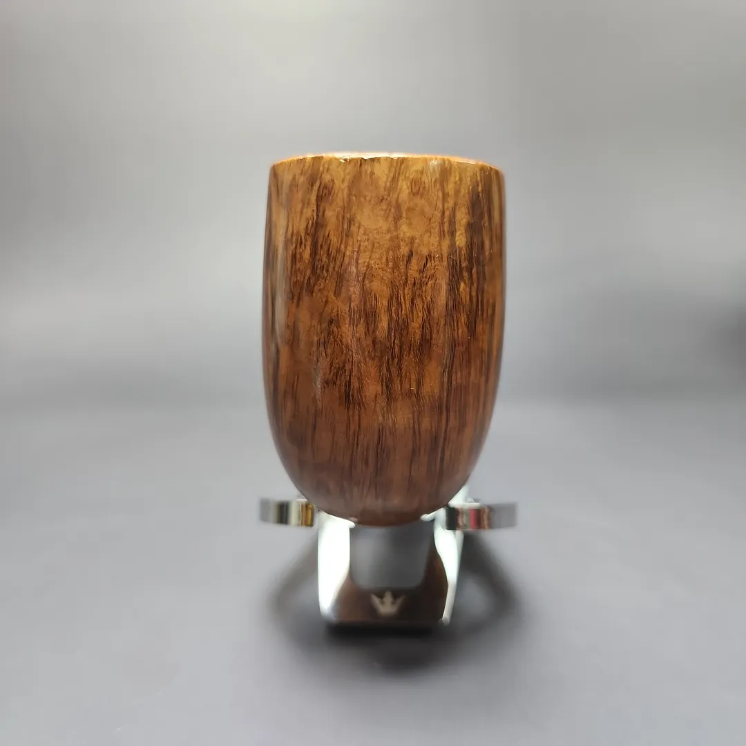 This one is a classic Baldi; large, laden with straight grain, and taking on a form that quite evidently comes from the labors of the hand, rather than the machine. Slightly bent in figure, it also features a rather curious, asymmetric saddle mouthpiece that adds an extra line to the design, one joining the angles of the stem to those of the rim.
