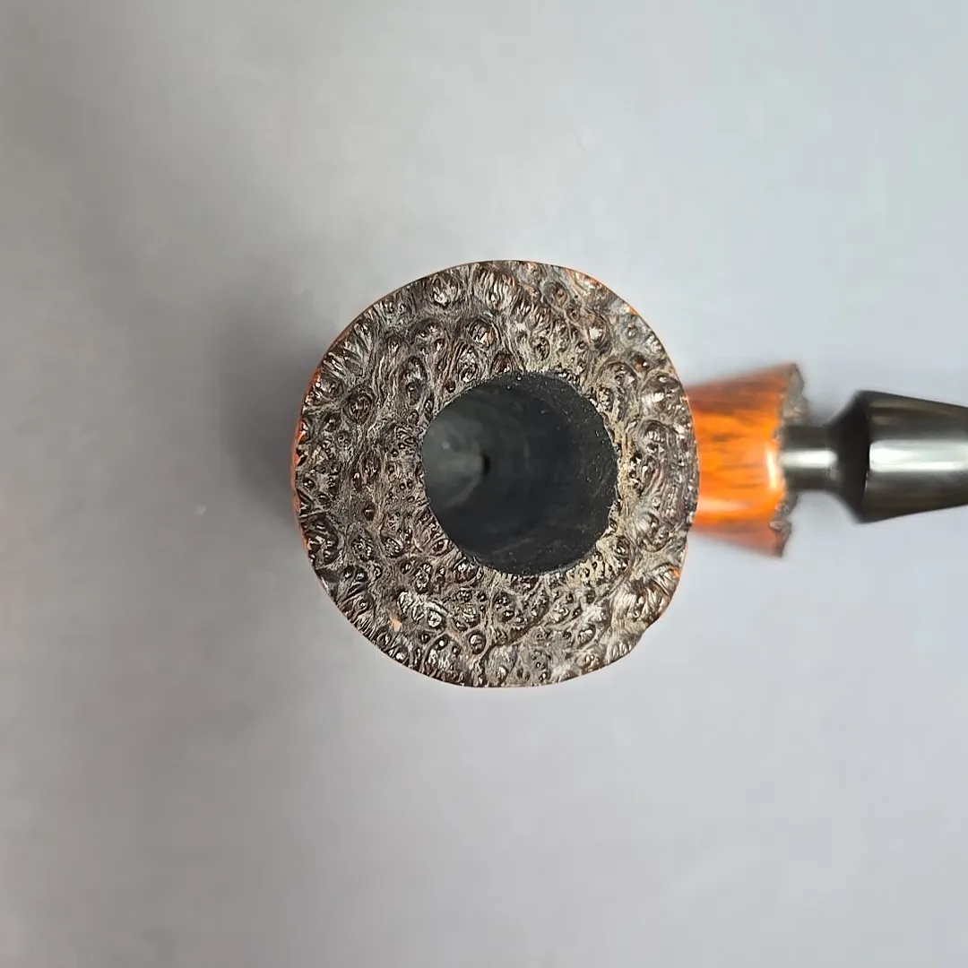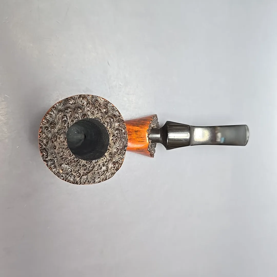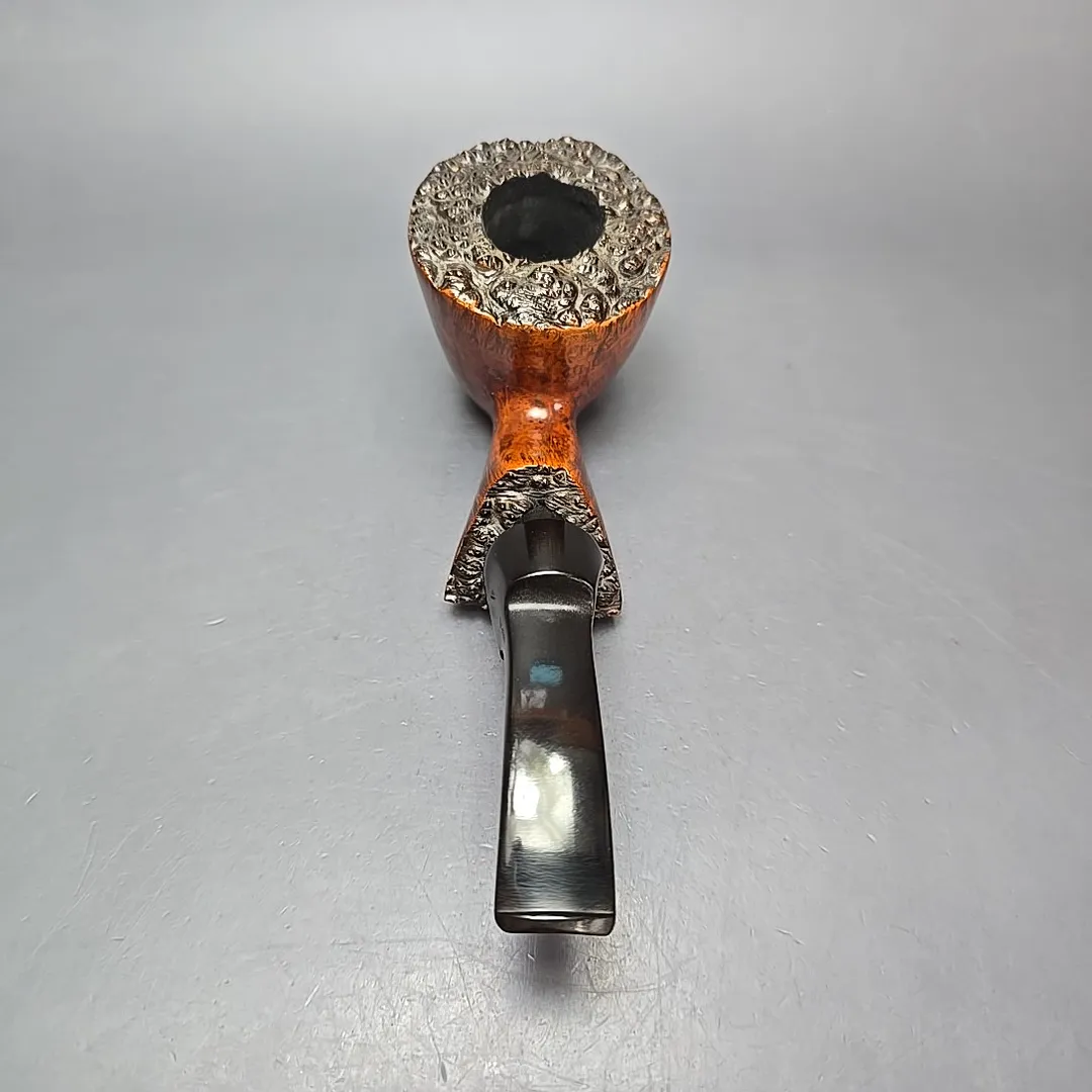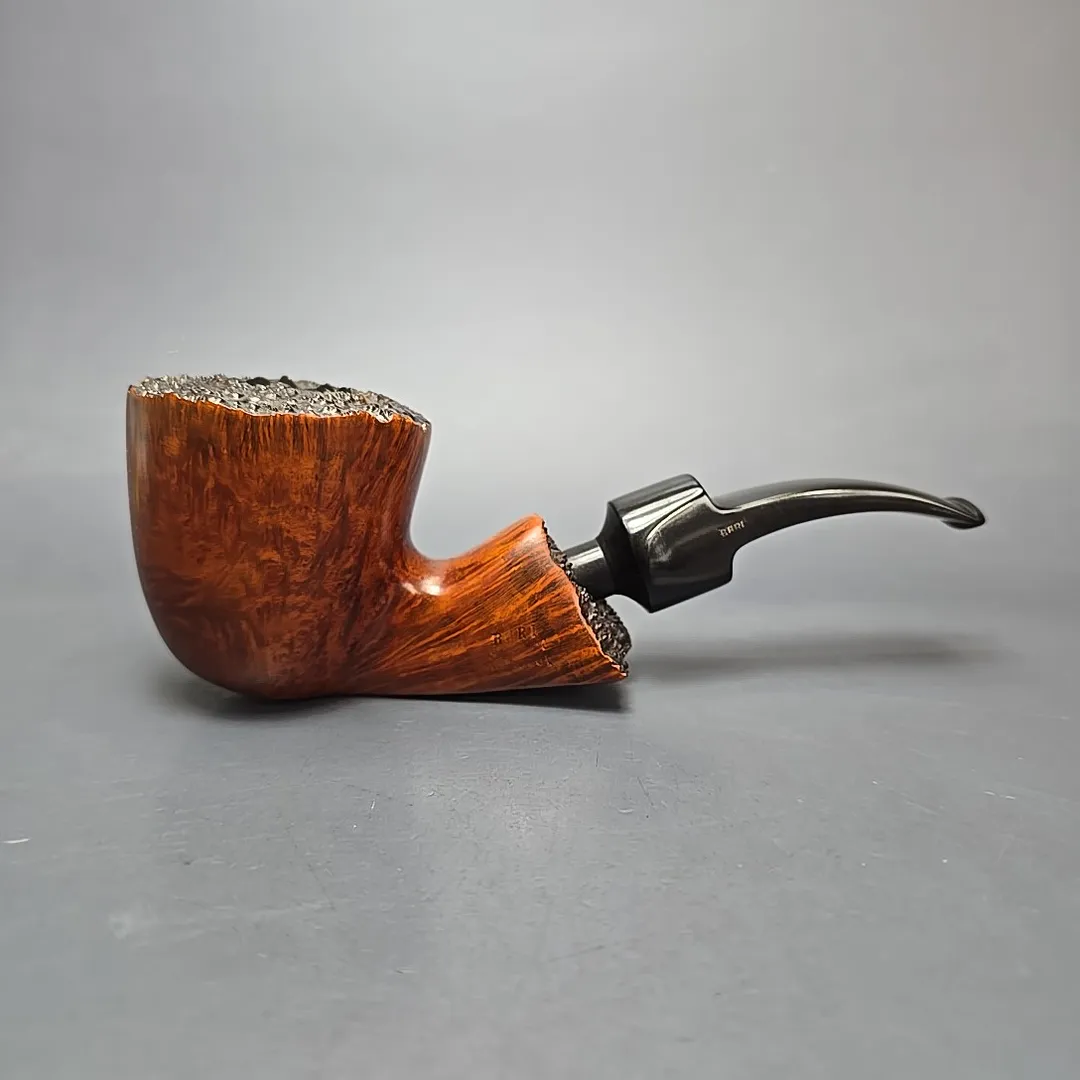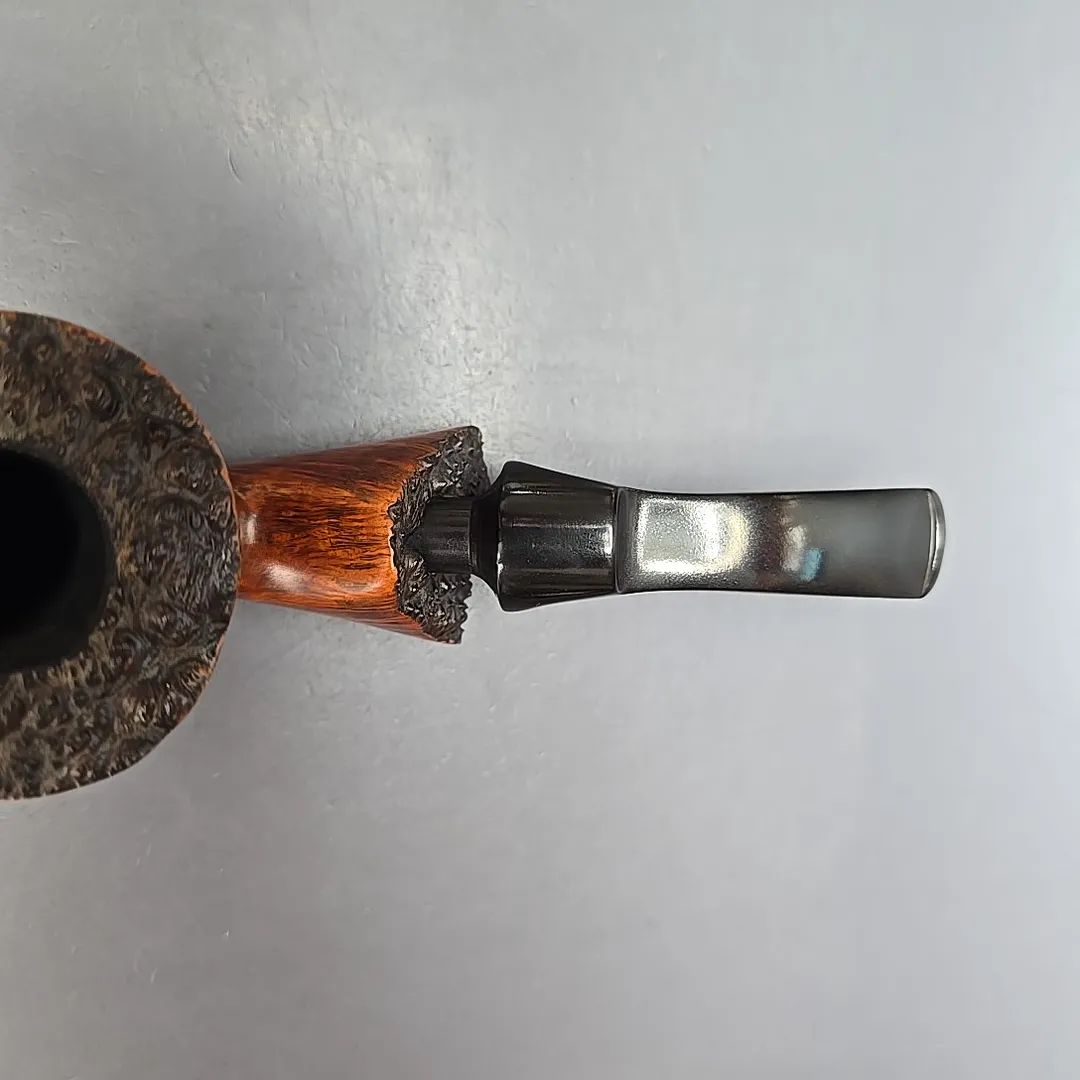 In an era defined by an explosion of freehand pipes, Bari was one of the few workshops to stand out with its pipes in that genre, thanks in no small part to interesting, recognizable design elements. One of these elements was the use of faceted sections on the bowl and shank, and another was in stem design, which incorporated rings, panels, and inlays, laying the groundwork for the modern split stem. This one, for example, is a classic Bari freehand; large, nicely grained, and distinctive, despite the counterintuitive constraints of its genre.