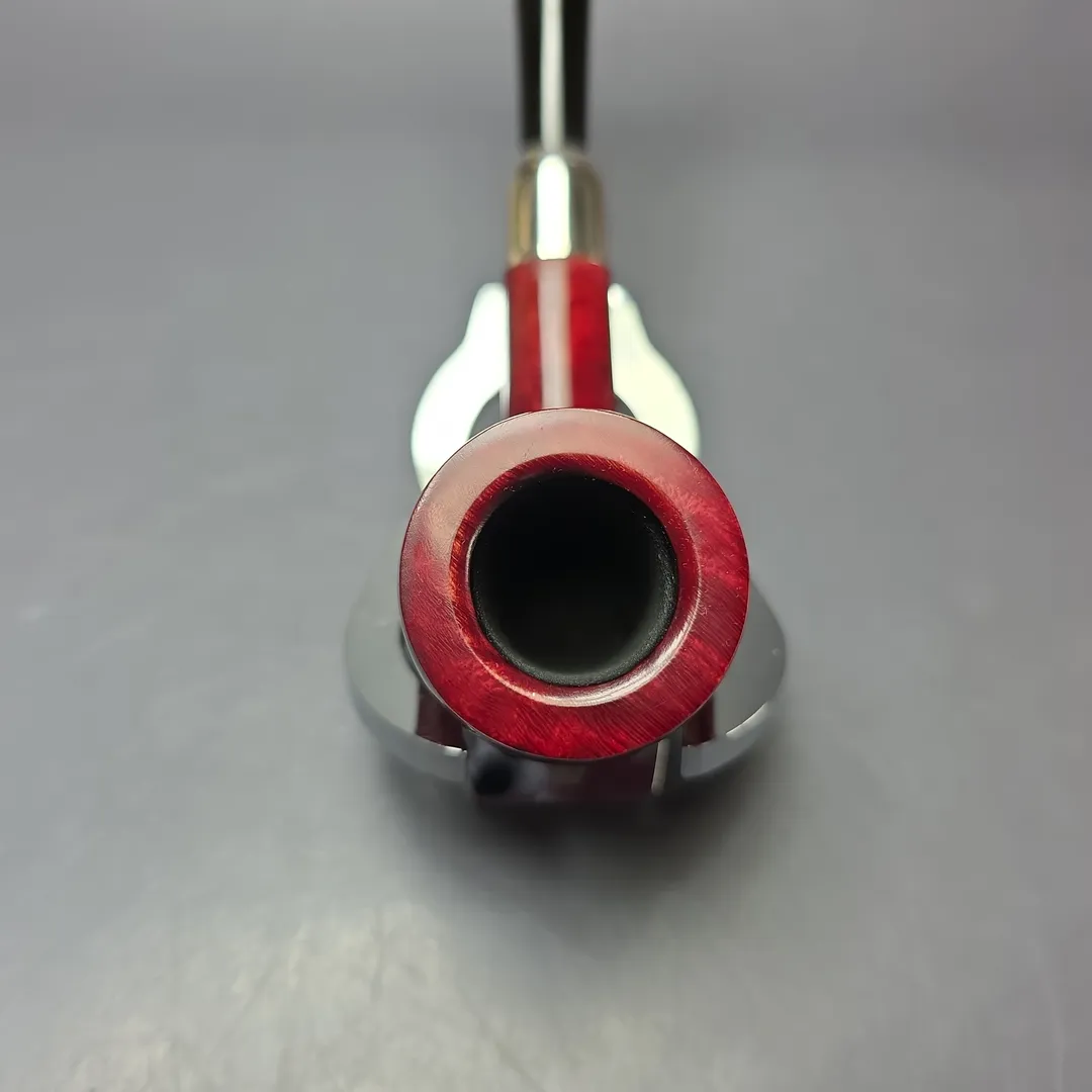 This particular Barling comes from 1967 and thus the “post-transition” era, that being the period after the make was acquired by Imperial Tobacco and production was moved to one of the conglomerate’s London factories. Though the Barling family were long gone by this point, that hasn’t stopped it from being a pleasant, very classic, billiard rendition. Dressed in a claret red finish, it’s a good size, yet surprisingly lightweight, making for an easy clencher. The sterling silver is always a welcome touch, too, this time taking the form of an army mount, not unlike the Barlings themselves used to make.