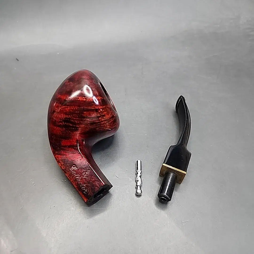 ‘Collector’ grades are typically higher end pipes from established makes, sometimes in different shapes to standard production, such as those offered by GBD or Dunhill. That appears to be the thinking here; this BBB is a gorgeous, ruby red bent Dublin whose shaping is almost Danish in style, with plenty of flame grain in the briar used. Judging by the brass ‘BBB’ rondelle set in the stem and the nomenclature on the shank, this BBB was produced before the make’s merger with Cadogan Investments Ltd in 1980, making it a particularly collectible pipe.