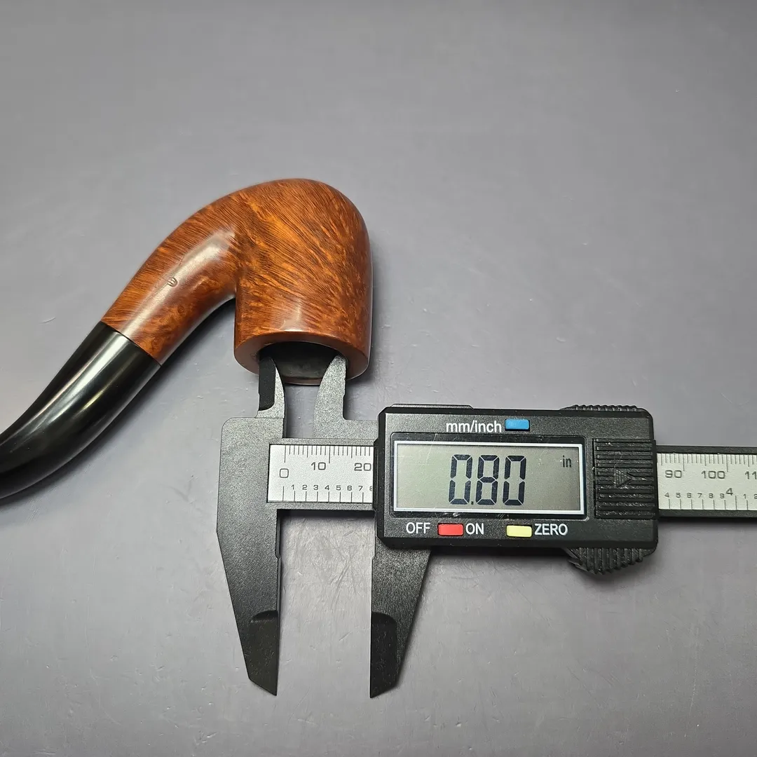 When you trade in estate pipes, most of the Ben Wades you see are actually Charatans or Preben Holms. In other words, most pre-owned Ben Wade pipes in circulation today were made by Charatan, where the make was used as a sub-brand for Charatan pipes, or in the workshop of Preben Holm, where the make was used for Danish freehand pipes. Both uses can be traced back to Herman Lane’s veritable tobacco empire Lane Ltd., which acquired Ben Wade in the early 1960s and contracted Holm in the early 1970s. But before Lane Ltd. entered the picture, Ben Wade was a venerable make in its own right, producing what were likely the most well-regarded pipes in the north of England. This one belongs to that “Leeds era” of Ben Wade pipes, and it is also one of the make’s higher end lines, the Selected Grain. It is definitely a beaut, not just because of the flame grain around the bowl, but owing to its markedly old-fashioned shaping. A full bent billiard that leans very close to an Oom Paul (without quite crossing that threshold), it takes on a drastic, yet still graceful curvature from bowl to button. Speaking of buttons, this may well be a pre-WWII Ben Wade, as the “orific” style of the stem’s tip is very much keeping with early 20th century pipe design.