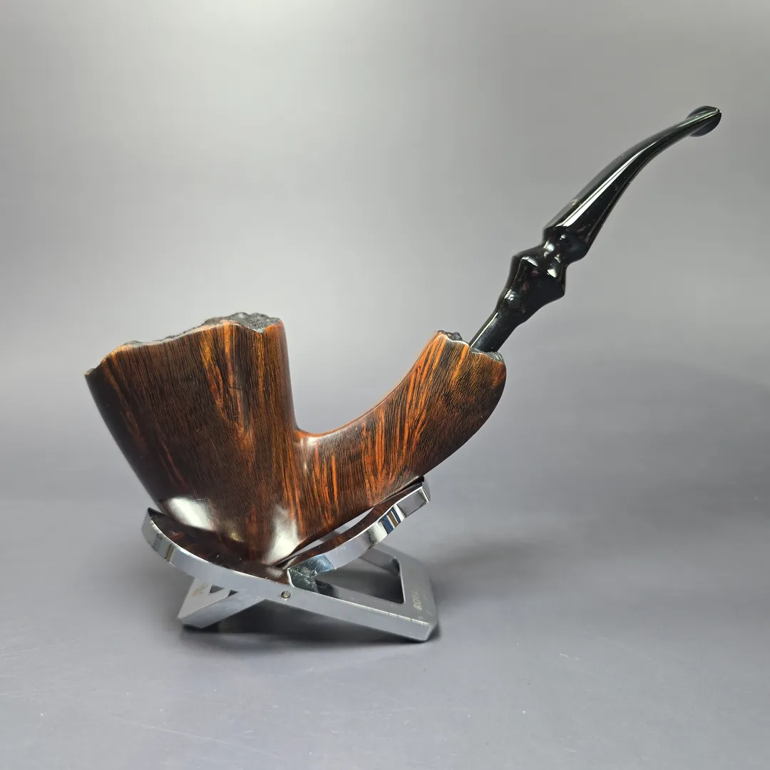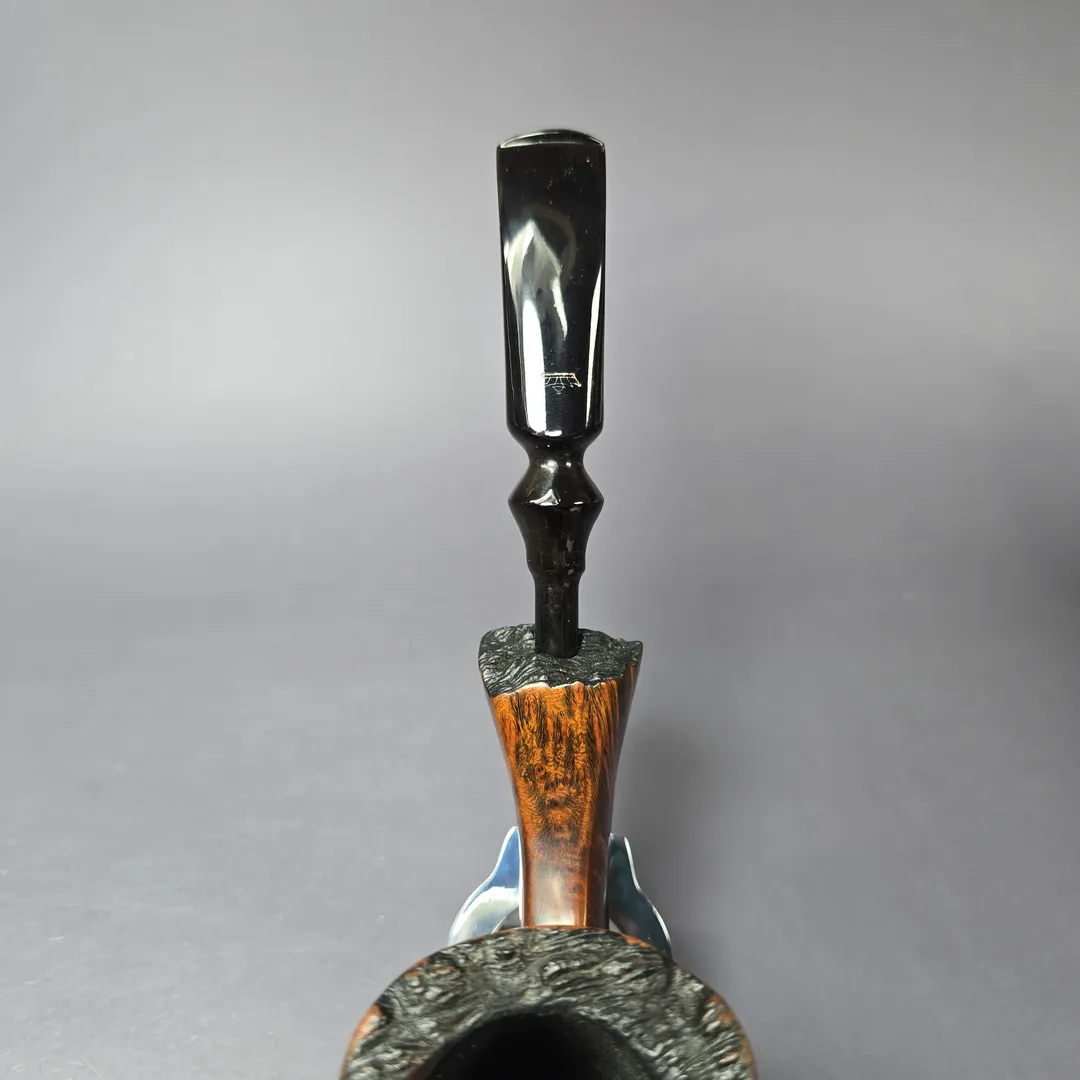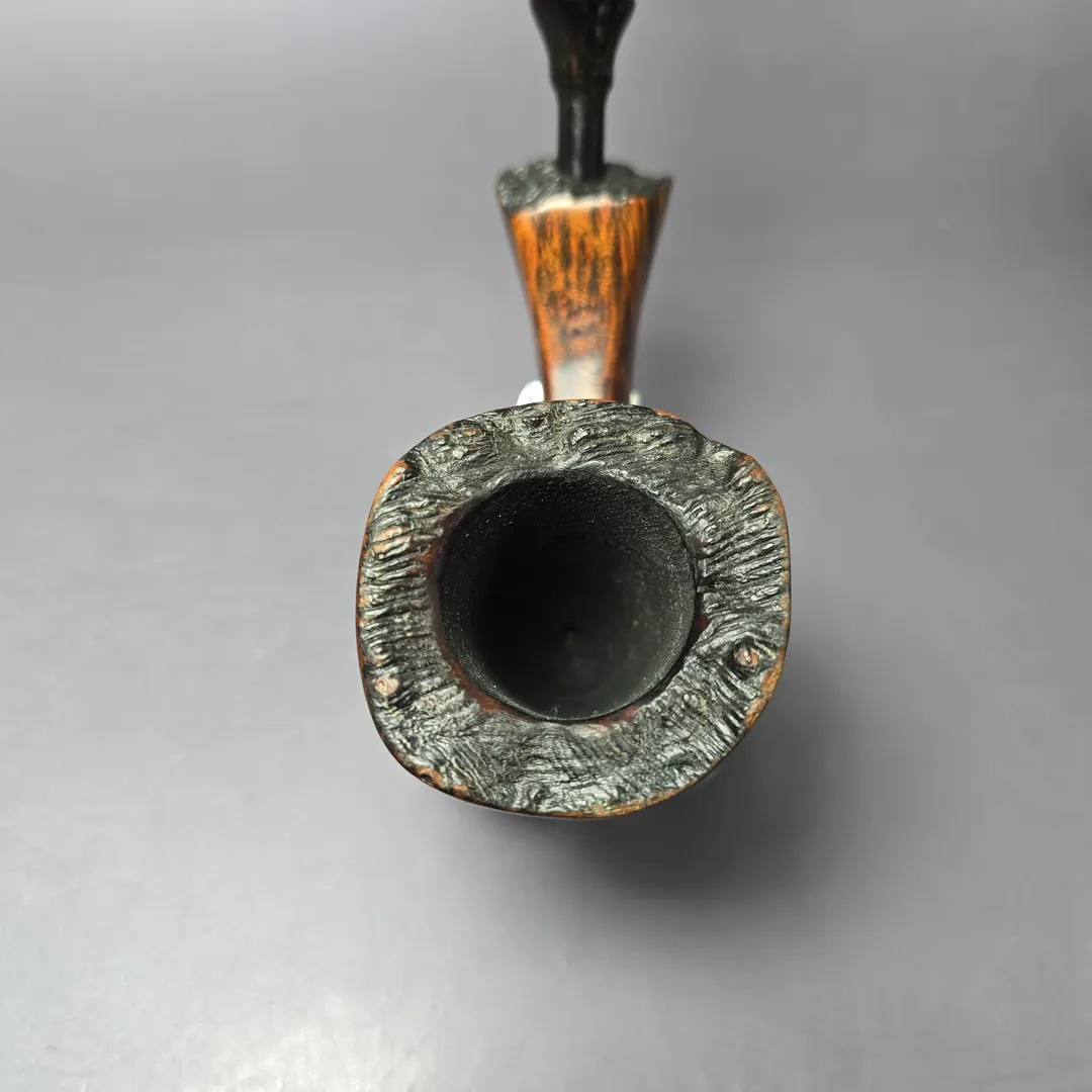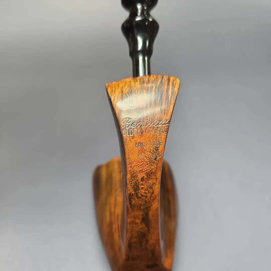 Preben Holm’s Ben Wade freehands came in a variety of styles and finishes, and as such a vast array of separate lines. Some of these lines were subdivided into grades (such as the Nobel Prize) and some into groupings. The Golden Walnut was an example of the latter. Alongside the Golden Tan, Golden Matt, and Golden Grain, the Golden Walnut was a quintessentially Danish freehand, bearing a warm, walnut contrast stain, as opposed to a matt contrast stain. This one is a lovely, very large example of the Golden Walnut, with tight, fibrous straight grain made even more striking by its contrast finish.