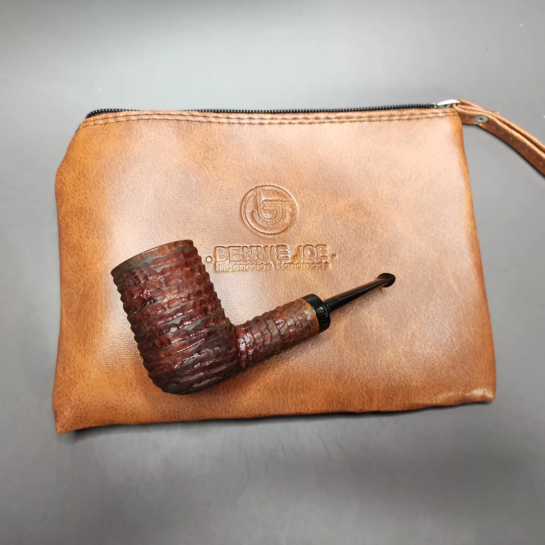 Bennie Joe Pipes are made by Bennie Joe, an Indonesian artisan based in Jakarta. A trained architect and part-time pipe-maker for much of his life, he took on the latter full-time after a downturn in the property market during the dark days of 2020 and after. An interesting aspect of Bennie Joe pipes is that they are made primarily with hand tools, rather than many of the woodworking machines pipe-makers employ. While the chambers and draft holes are drilled, the body of the pipe is formed using hand tools, creating genuinely freehand shapes reminiscent of those made in mid-century Denmark. It should come as no surprise that one of Bennie Joe’s heroes is the late, great, Bo Nordh.