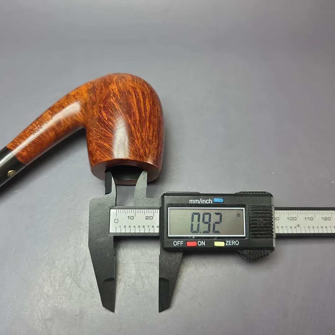 This pipe is completely unsmoked, with an original bowl coating, and comes with its original sleeve. It is chambered to allow for the use of 9mm filters if desired. Some very slight scratches on the bowl and minor residual oxidation on the stem, though nothing major.