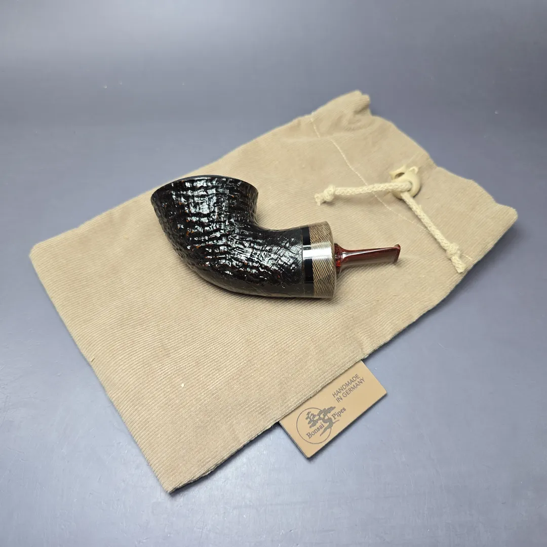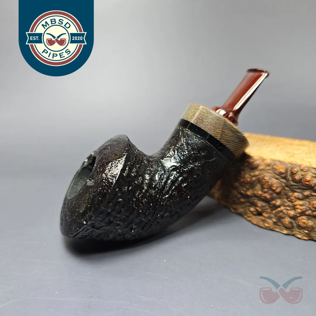 Bonsai Pipes Sandblasted Knubbel Rhodesian w/ Stabilized Platan Handmade Briar Pipe, New