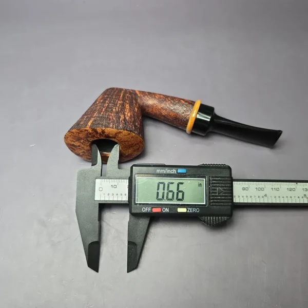 Speaking of tailoring, one of the perks of working in the construction of bespoke suits is that, every so often, one of the luxury clothing hangers used to display such suits might “find its way” out of the store and into one’s home. These hangers are no joke, either, with a price tag correlating to the clothing intended for them. So it’s a small tragedy when one falls from the rack and breaks in half, rendering it no longer usable for its intended purpose. But, for someone who crafts similarly high-end pipes, there is a silver lining to suddenly having a few pieces of expensive lumber to spare. That would be what happened here. This high-contrast, sandblasted Dublin would already be a real looker of a pipe, especially with its rich tapestry of ring grain and stain, but the addition of a polished maple accent at its shank end adds a little something extra, while also pairing beautifully with the pipe’s smooth polished rim section.