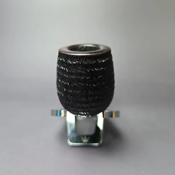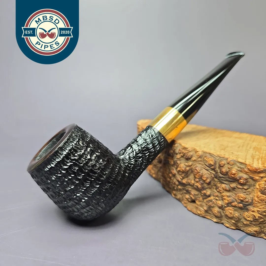 Rustication has a curious history within Danish pipe making. While Danish pipes are commonly associated with the pinnacle of straight grain pipes, rustication is no less an appreciated art in Denmark than it is in, for example, Italy. In other words, Denmark has been a world leader in showing that hand-carved finishes by no means preclude a pipe from being high-grade, a tradition that one can trace back at least to Peter Brakner in the 1950s. There is, however, a much greater variety when it comes to Danish rusticated finishes than Italian ones, likely in part because so much of Italian pipe making is still concentrated in collaborative workshops and factories, whereas Danish pipe making is largely a solo affair these days. Tom Eltang has his signature rusticated finishes, as does Hans “Former” Nielsen, Anne Julie, and Kent Rasmussen, to name but a few. And each is different. The same goes for Brian Madsen, whose technique looks, at first, like a ring grain sandblast; upon closer inspection, it looks like a line-carved emulation of sandblasted ring grain; but closer still, one notices it to be comprised of minute etches in the briar that rise and fall like an ocean’s rolling waves.