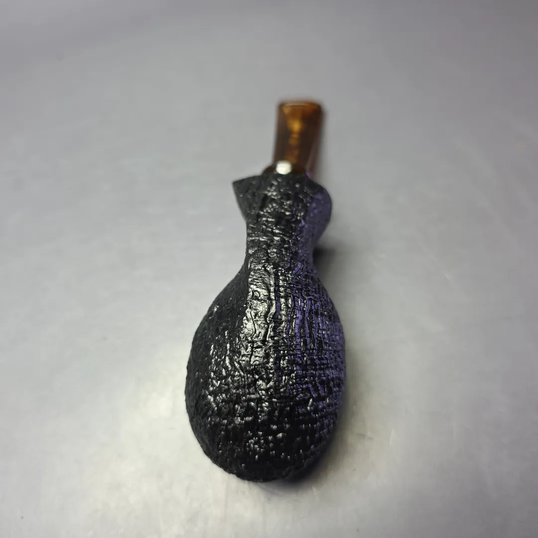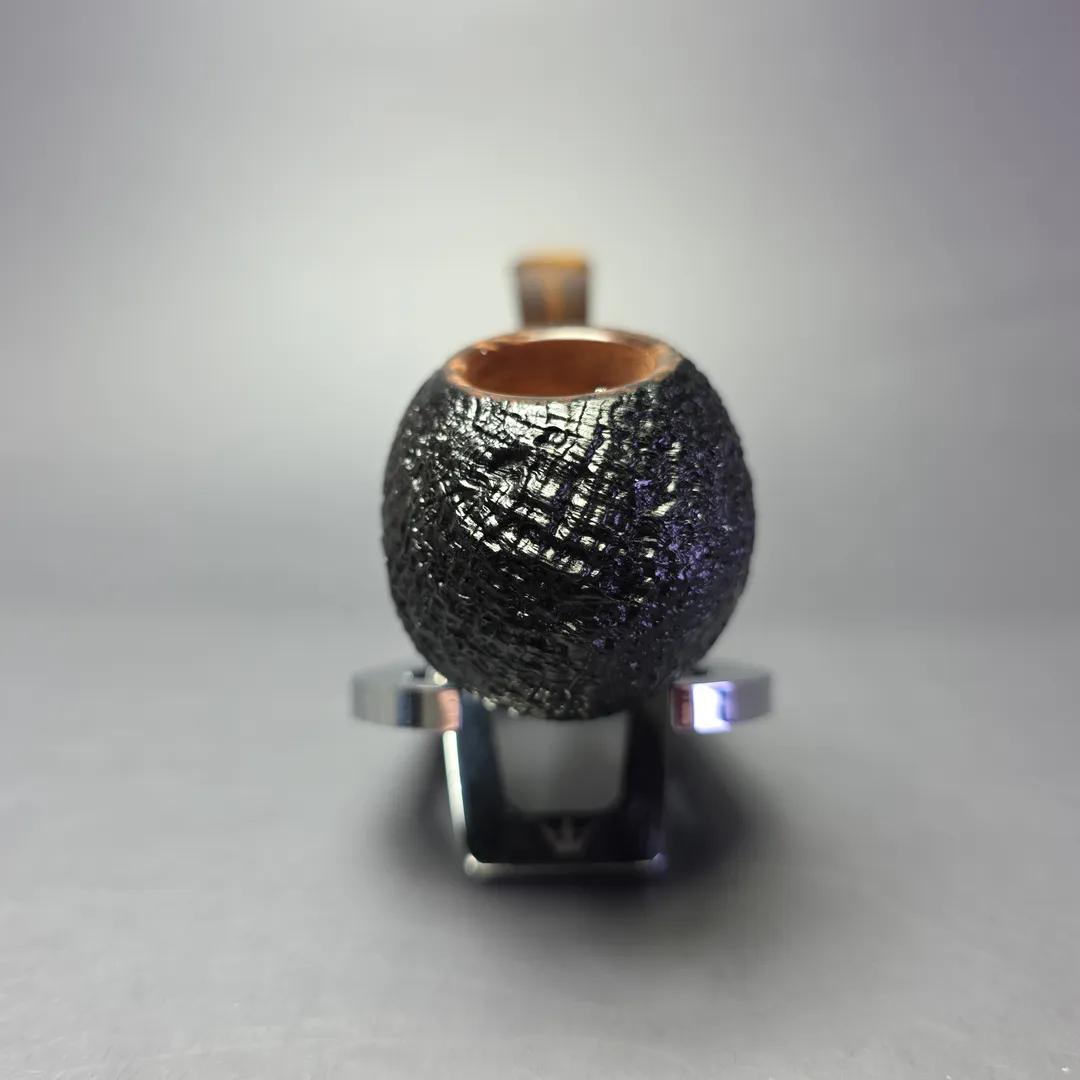 In the most recent batch of Buckeyes made for us by Premal Chheda and his colleagues, there’s been a great mix of what I’d call “classic Buckeye” designs on the one hand, and designs that are a little outside of the norm for Chheda’s collaborative make. Both groupings have been excellent, but this difference has highlighted a great versatility at play in the crafting of Buckeye Pipes. I’d count this one as among the former grouping, i.e., the “classic Buckeye.” It’s a decidedly stout and sturdy, yet surprisingly fluid, take on the blowfish shape, complete with a teardrop shank and a flared, tortoiseshell mouthpiece. The finishing is excellent, too, with a crisp, near-black sandblast that hammers home the pipe’s hardy, American-made aesthetic.