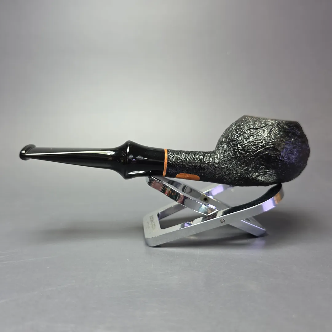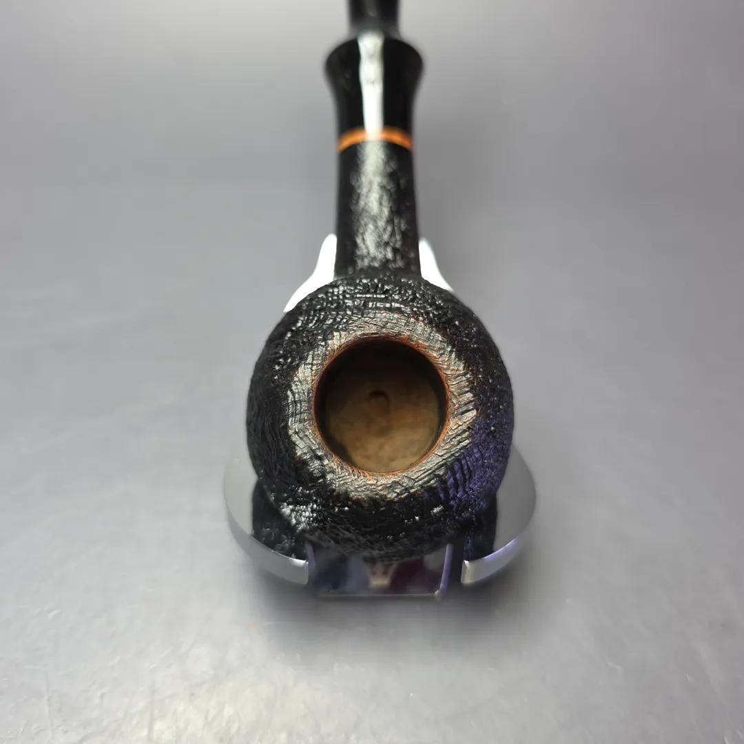 This one, for example, takes the form of a minor staple in American artisan pipe making: the squat tomato. While the shape has its origins in early French briars, 21st century American carvers seem especially fond of tomatoes, especially ones refracted through the Danish lens. Whether it’s Rad Davis, Abe Herbaugh, or Premal Chheda itself, few have resisted its allure in that particular scene. This one is a toned down, but still distinctive rendition, combining a simple, crisp black sandblast with a flared acrylic mouthpiece.