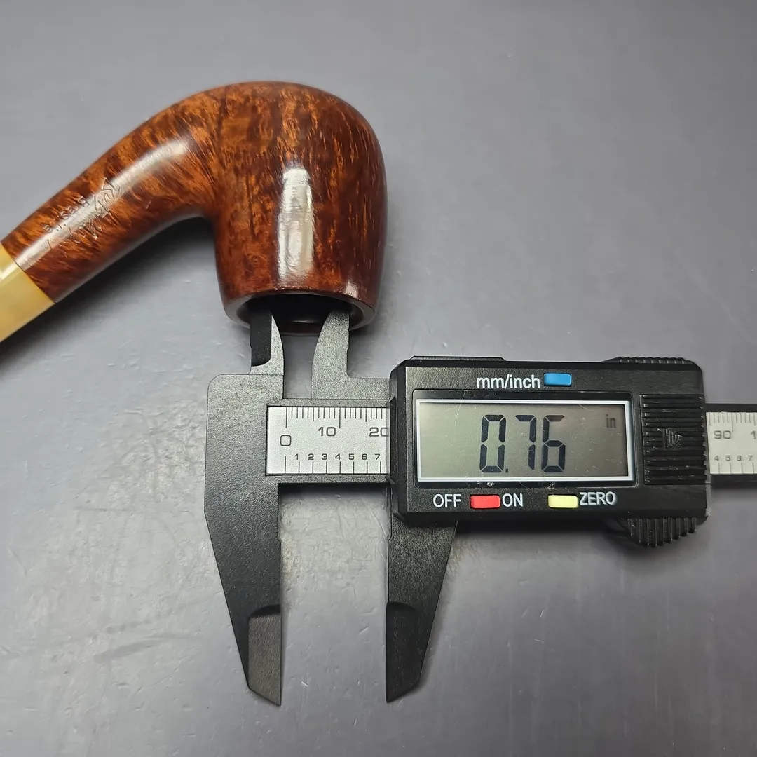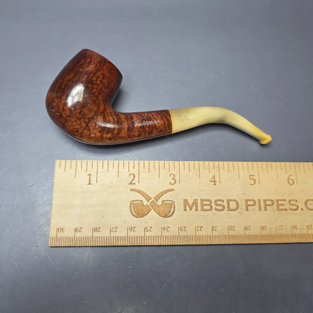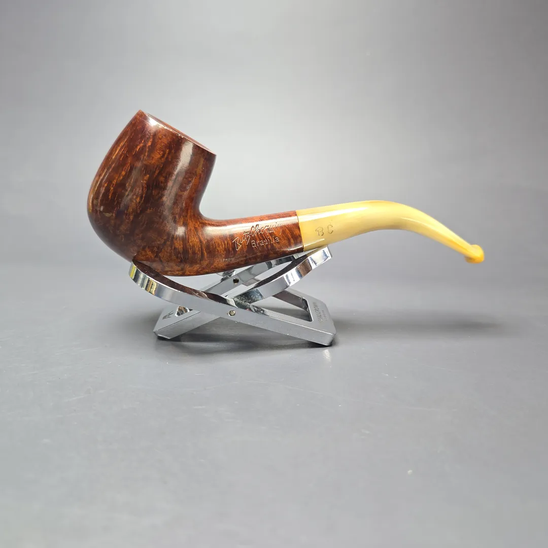 The Brasilia line was something of a throwback by Butz-Choquin, one that recalled its roots in early French briar pipes and the other materials traditionally used in their manufacture. In this instance, the other material present was horn, which was once a staple for pipe mouthpieces (and indeed is still used by some French makes, such as Genod and Ropp), and which was put to use once more for the Brasilia line. This one is a beautifully grained bent billiard, much like the bent billiards that will have been made in the 19th century, with its golden brown finish offset by the lighter hues of its horn mouthpiece.