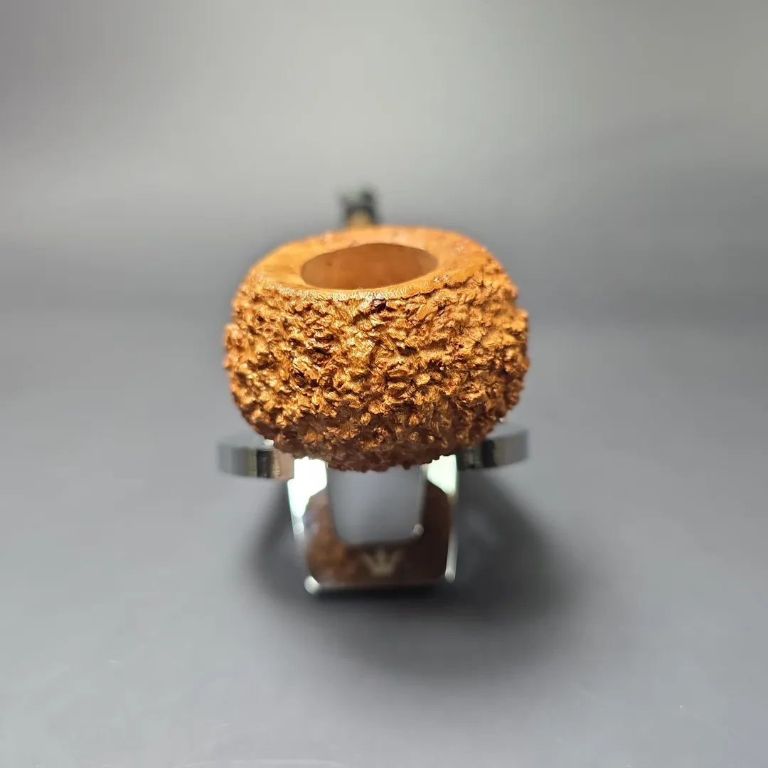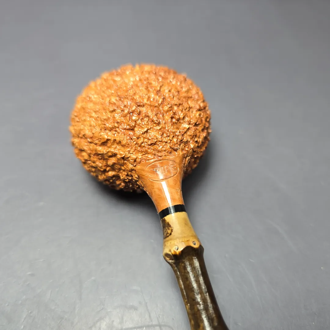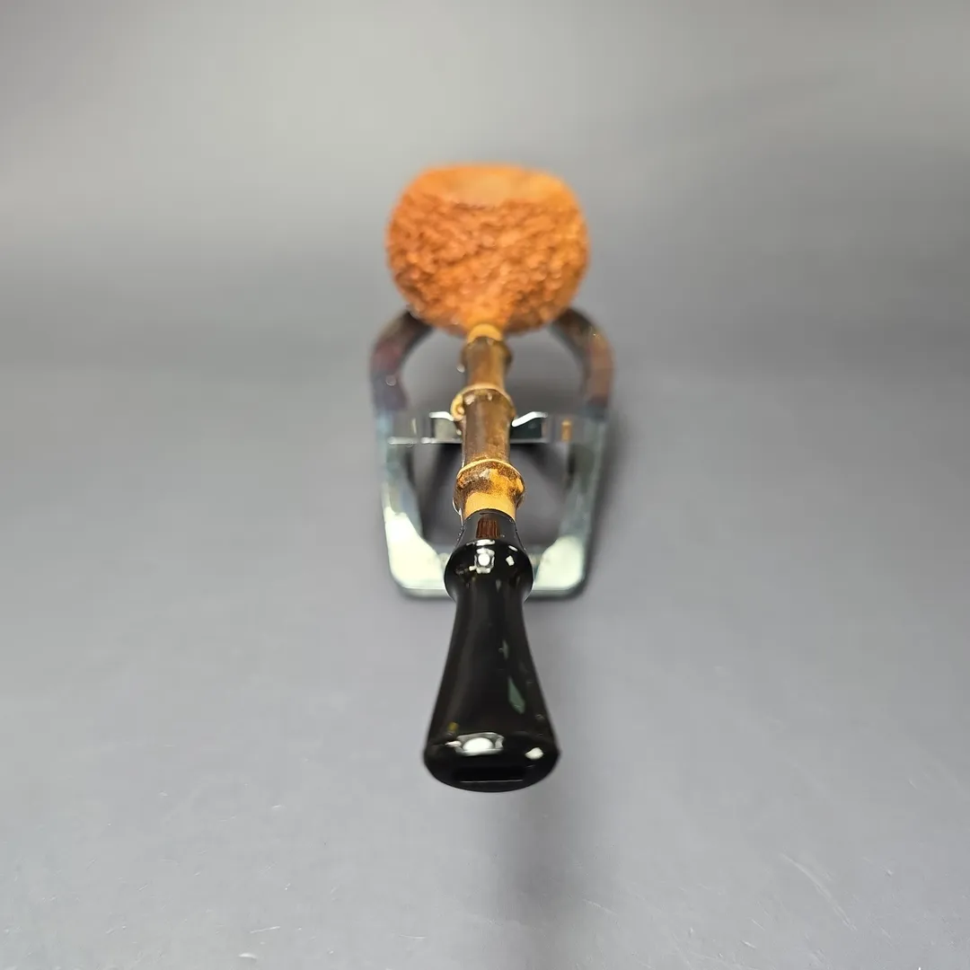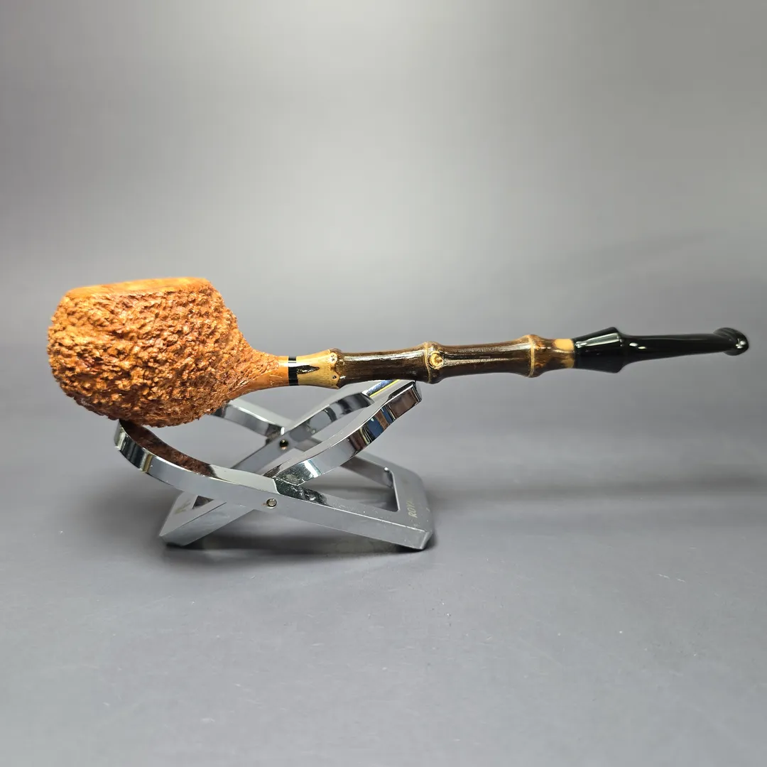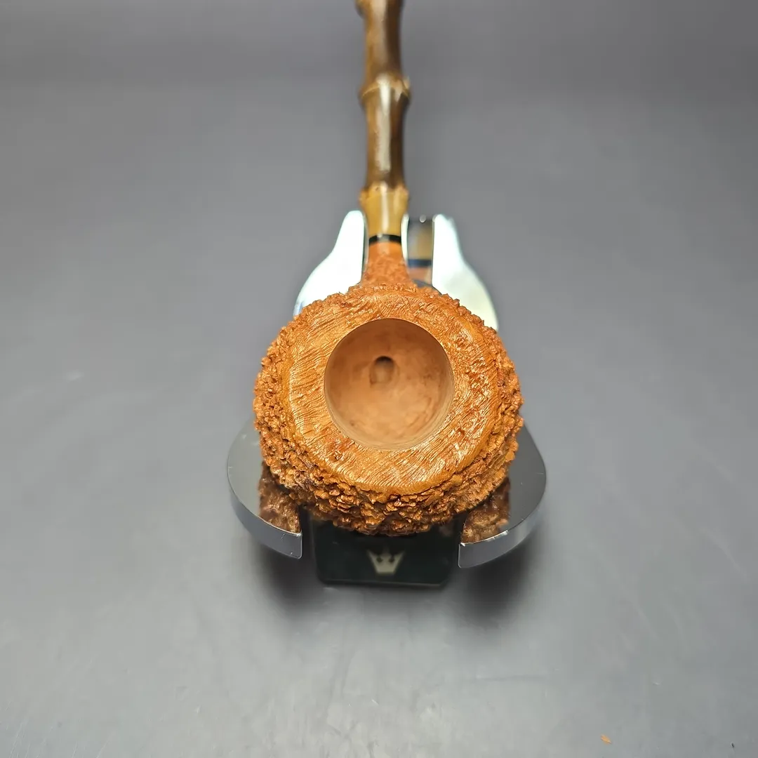 While difficult to work with, bamboo has many advantages when it comes to pipe making, not least in its capacity to afford exceedingly lightweight designs. This bamboo prince from C-Pipe is a good example of that affordance in action. Despite being well over 6 inches in length, the pipe is a genuine featherweight, at less than an ounce in weight. In a very interesting move away from convention, the design also incorporates a tactile, Italian-style partial rustication round its bowl, making for a pipe that is equal parts distinctive and ergonomic.