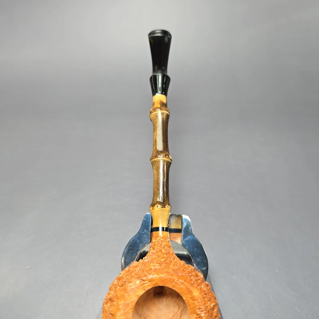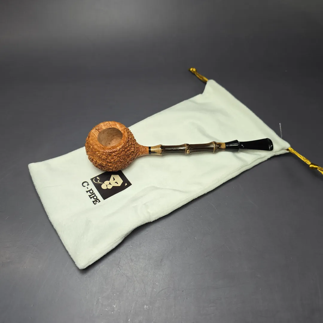 C-Pipe Partially Rusticated Prince w/ Bamboo Handmade Briar Pipe, New