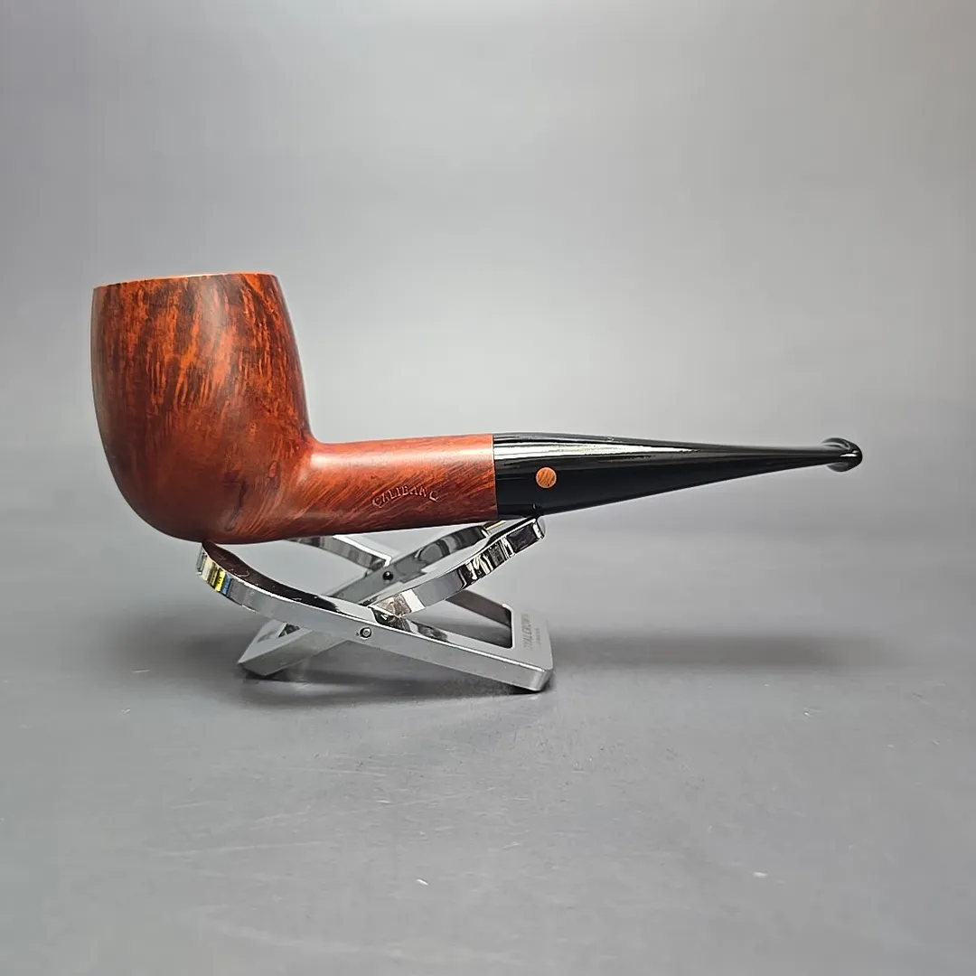 I have seen many references to Calibano pipes as a Mastro de Paja “second,” and while they were made by Mastro de Paja, to call them “seconds” is not entirely accurate. Instead, Calibano was a Mastro de Paja sub brand, and specifically one through which Mastro de Paja offered something more akin to a factory pipe. In other words, while just about every Mastro de Paja pipe is handmade in the Italian workshop tradition, with the typical result being that each has been unique, Calibano pipes were made with the use of fraising machines and, as such, were offered in a roster of set shapes and finishes. It’s a little like Savinelli’s establishment of the Autograph workshop, but in reverse; instead of starting out a factory make and branching out into freehand pipes, Calibano was a case of a freehand pipe workshop branching out into factory briars.