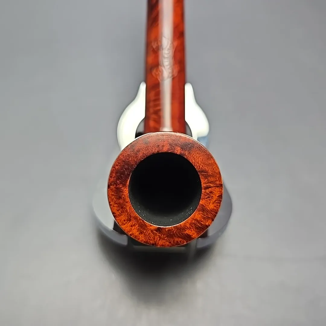 It’s hard to beat a good old Canadian rendition, something even the more adventurous Italian workshops and artisans are happy to concede. This one is far more classical than some of the extra-long, long shanks often favored in the Italian handmades scene, and the purists among us will be all the happier for it. As with the other Calibano pipes we’ve seen thus far, the proportions are, instead, just about goldilocks, with a reasonable, fairly light weight and an ample chamber, all dressed in a fiery, brick-red finishl.