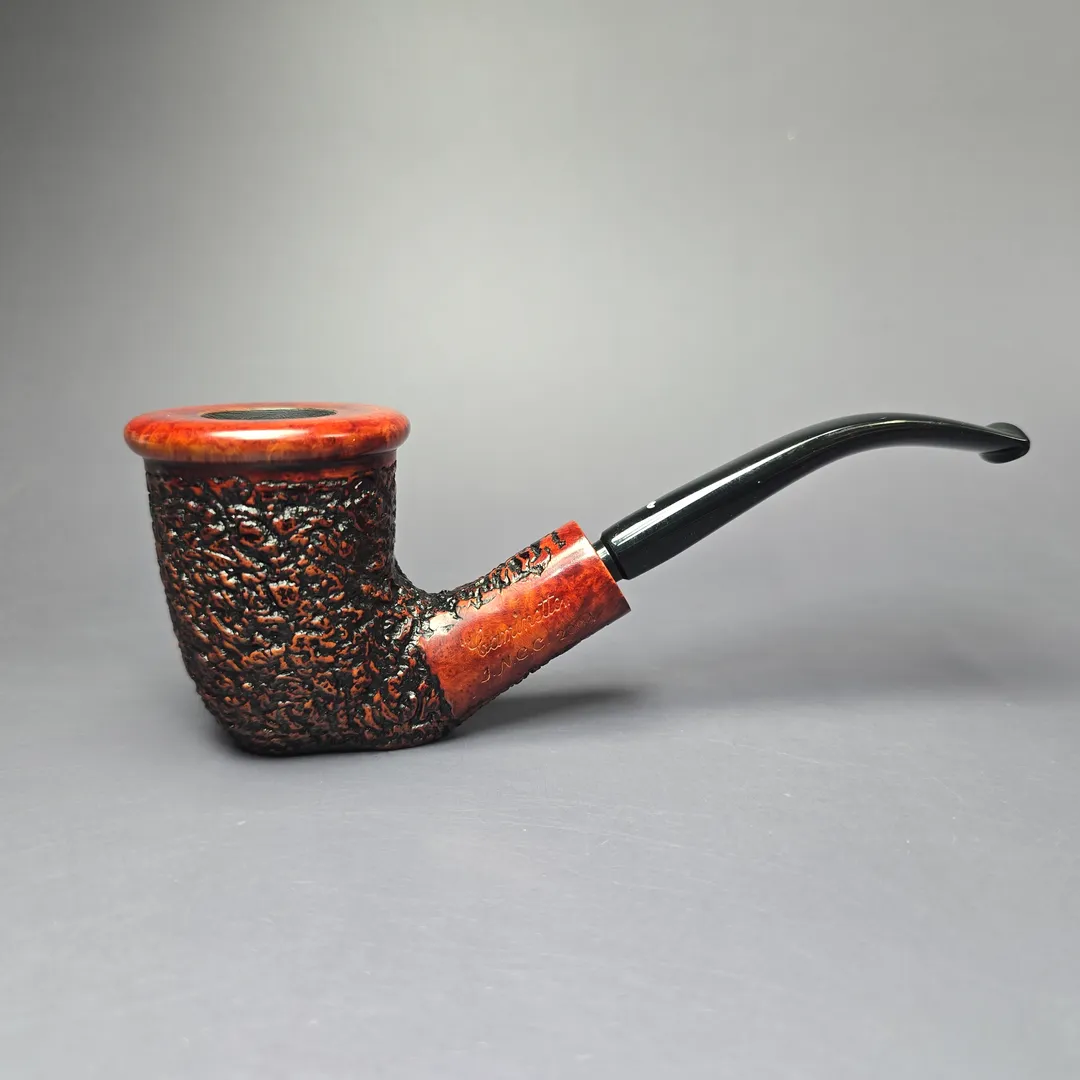 Caminetto was, and is to this day, a decisive figure in the history of Italy’s pipe workshop tradition. After spending time developing their skills in the Castello workshop, Guiseppe Ascorti and Luigi Radice left to found their own venture, which they named, “Caminetto.” Here, Ascorti and Radice were able to create their own now-classic shapes and finishes, such as the rusticated “Business,” and the carved, wax-drip “New Dear.” By the early 1980s, Ascorti and Radice had gone their separate ways and founded workshops under their own names, after which what remained of the Caminetto workshop mysteriously burned down and was dissolved. In the mid-1980s, however, the Ascorti family acquired the rights to the Caminetto brand, relaunching it as a separate project alongside Ascorti pipes.